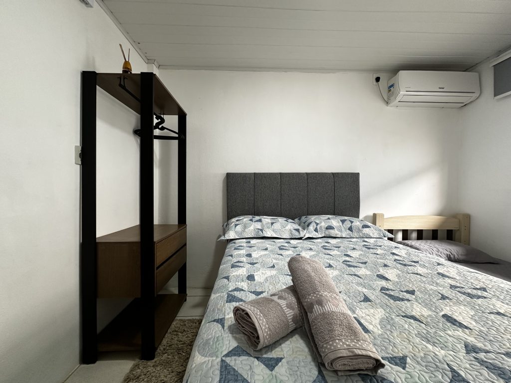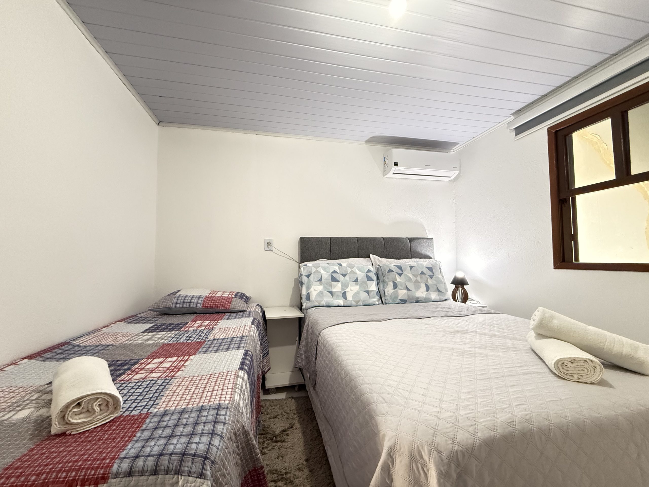 – QUARTO 2: cama box casal + cama de solteiro + guarda roupas + ar condicionado split