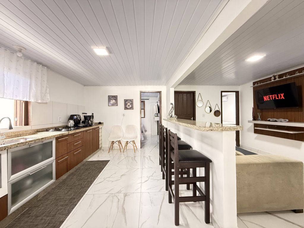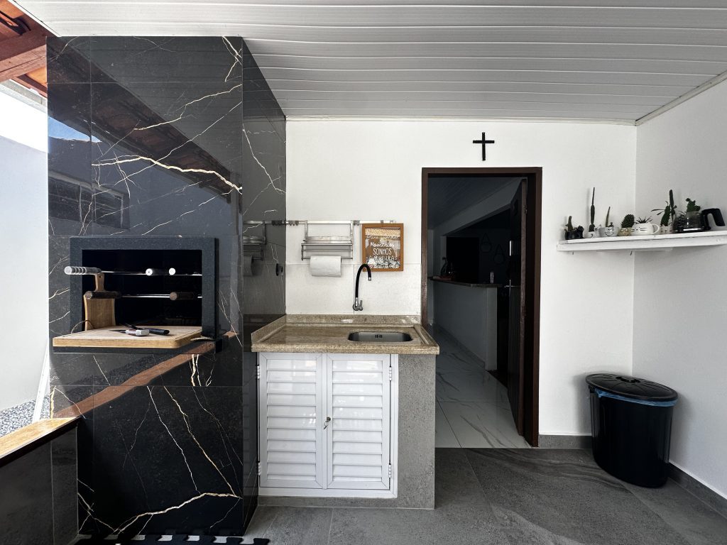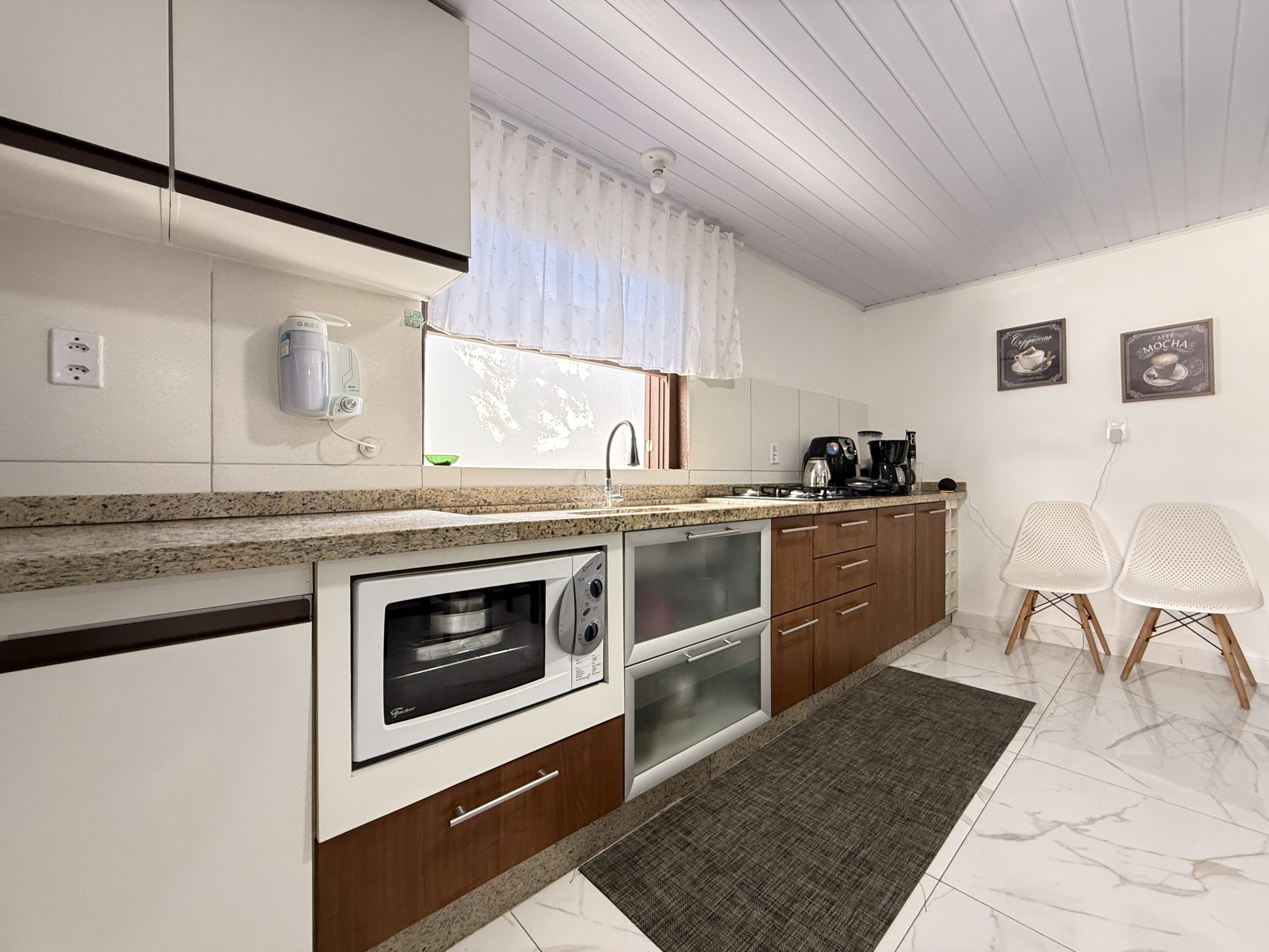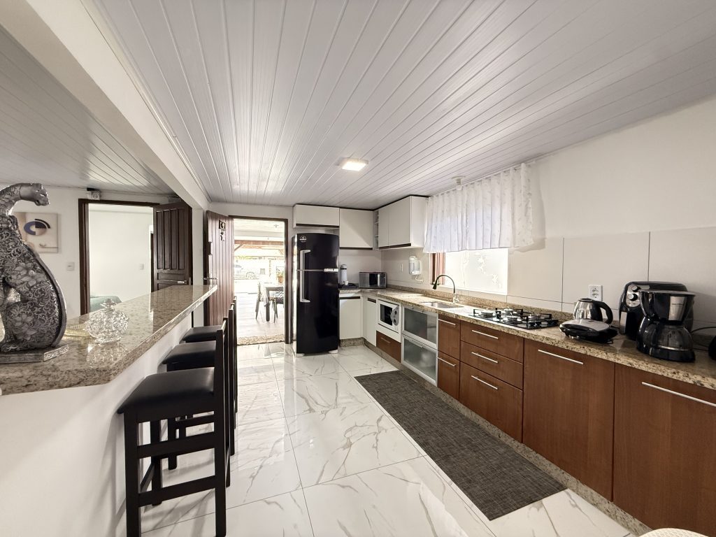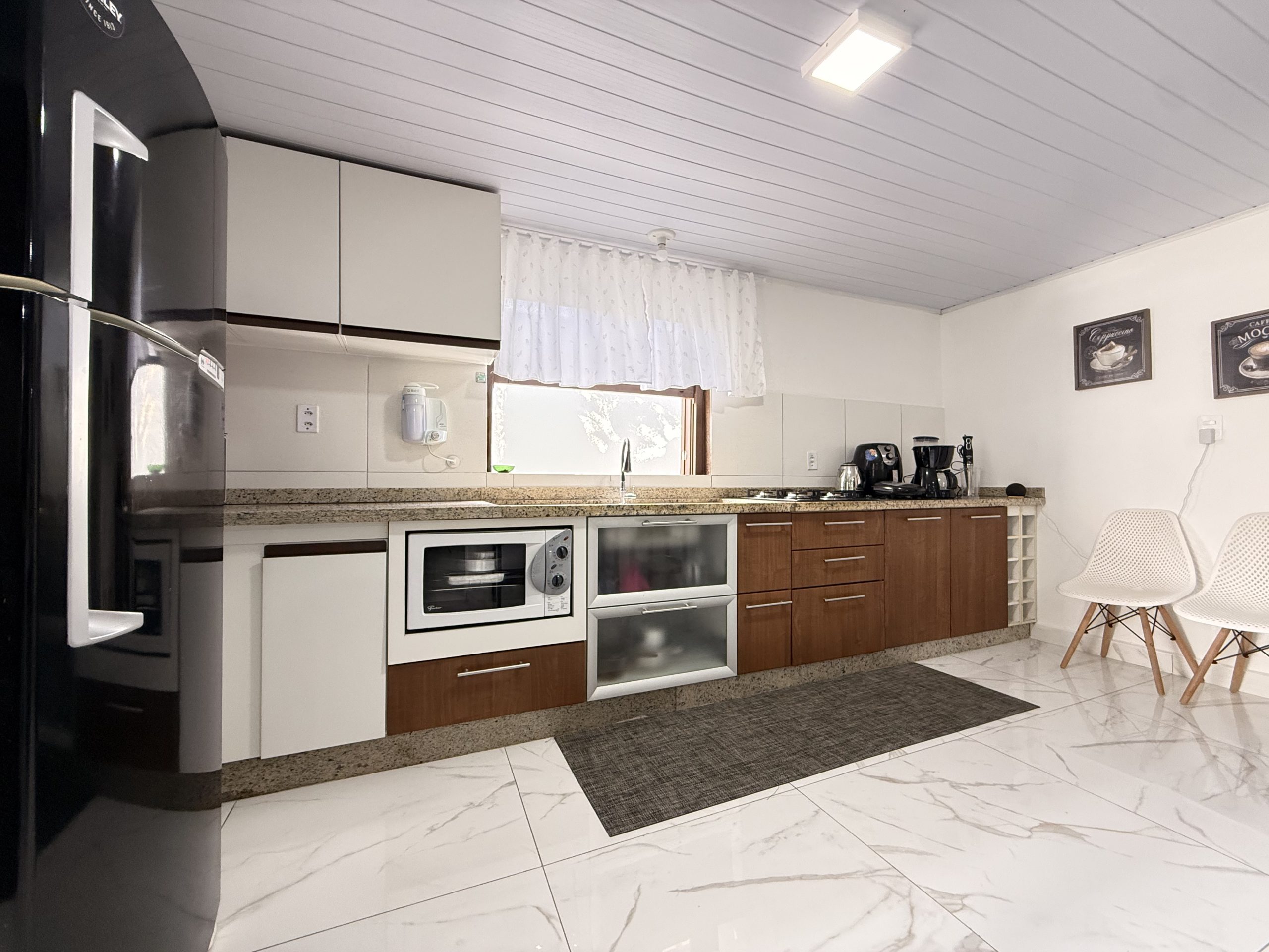 – Cozinha muito bem equipada com tudo que precisar para curtas e longas estadia, geladeira duplex, cooktop, forno elétricos, liquidificador, sanduicheira, filtro água potável, torneira elétrica, etc.