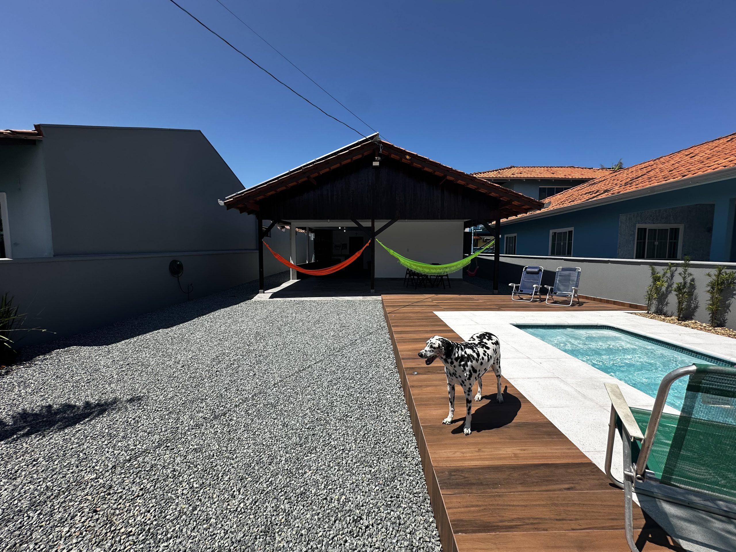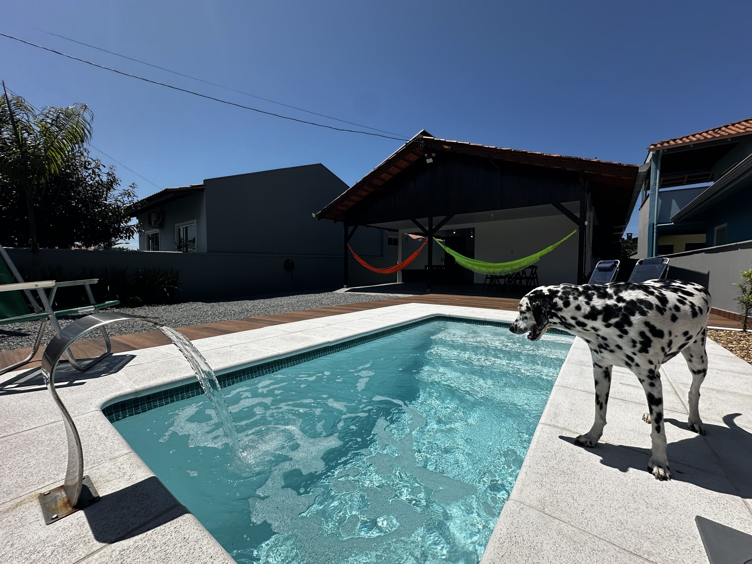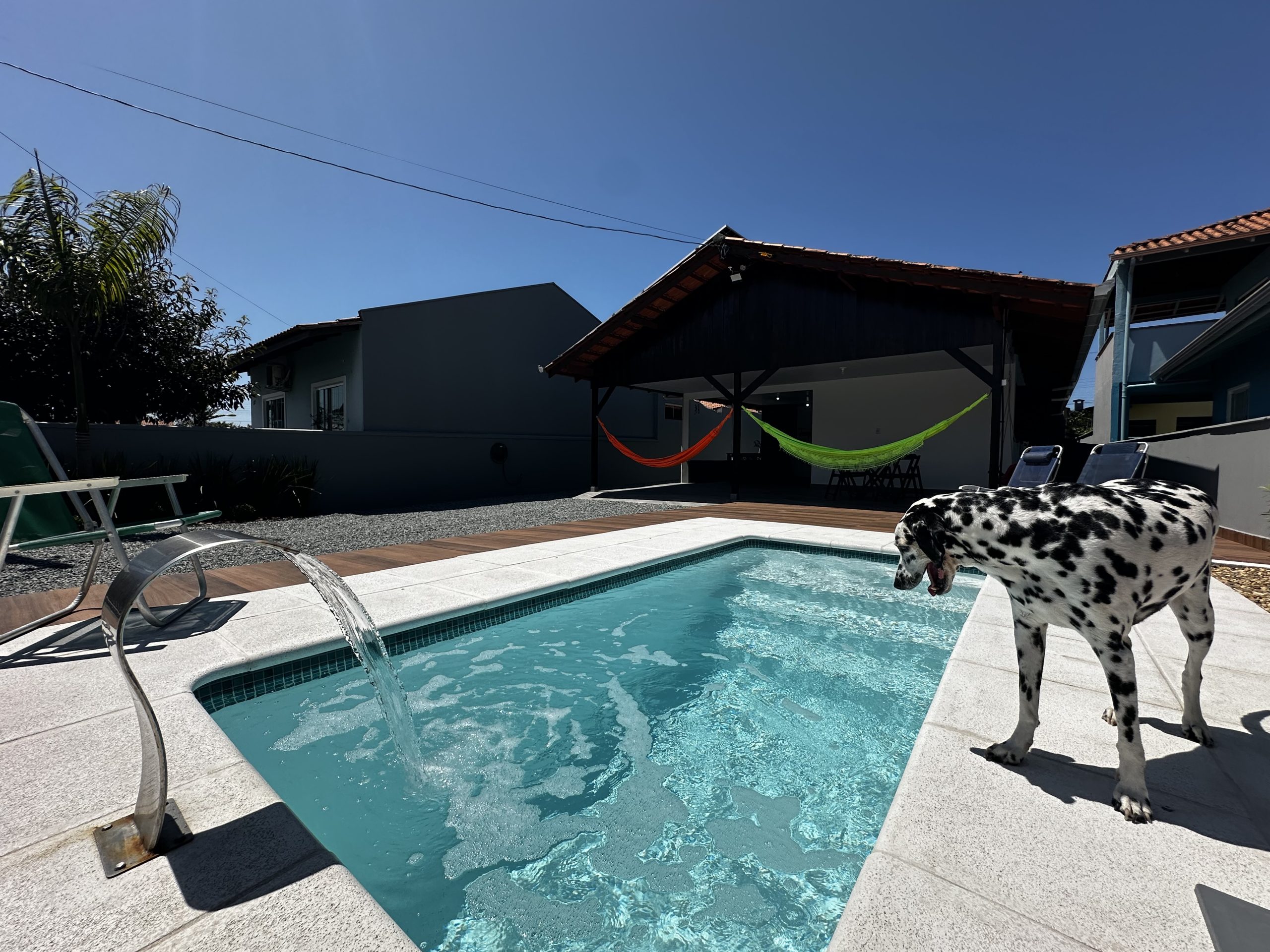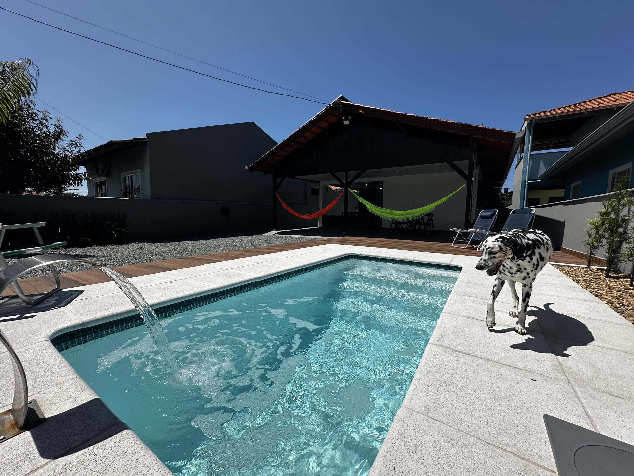 Tradicional casa de praia com piscina aquecida, muito bem equipada e confortável, localizado à 1 quadra do mar em Balneário Barra do Sul. Composto por 3 quartos sendo 1 suite, todos com ar condicionado split novos. Sala com TV 42″ Smart e canais à cabo, filmes e séries. Fornecemos roupas de cama e banho para todos os hóspedes. . Área externa conta com uma varanda com churrasqueira à carvão, mesa para refeições, além de 5 pontos de rede. No quintal cabe 2 carros tranquilamente.