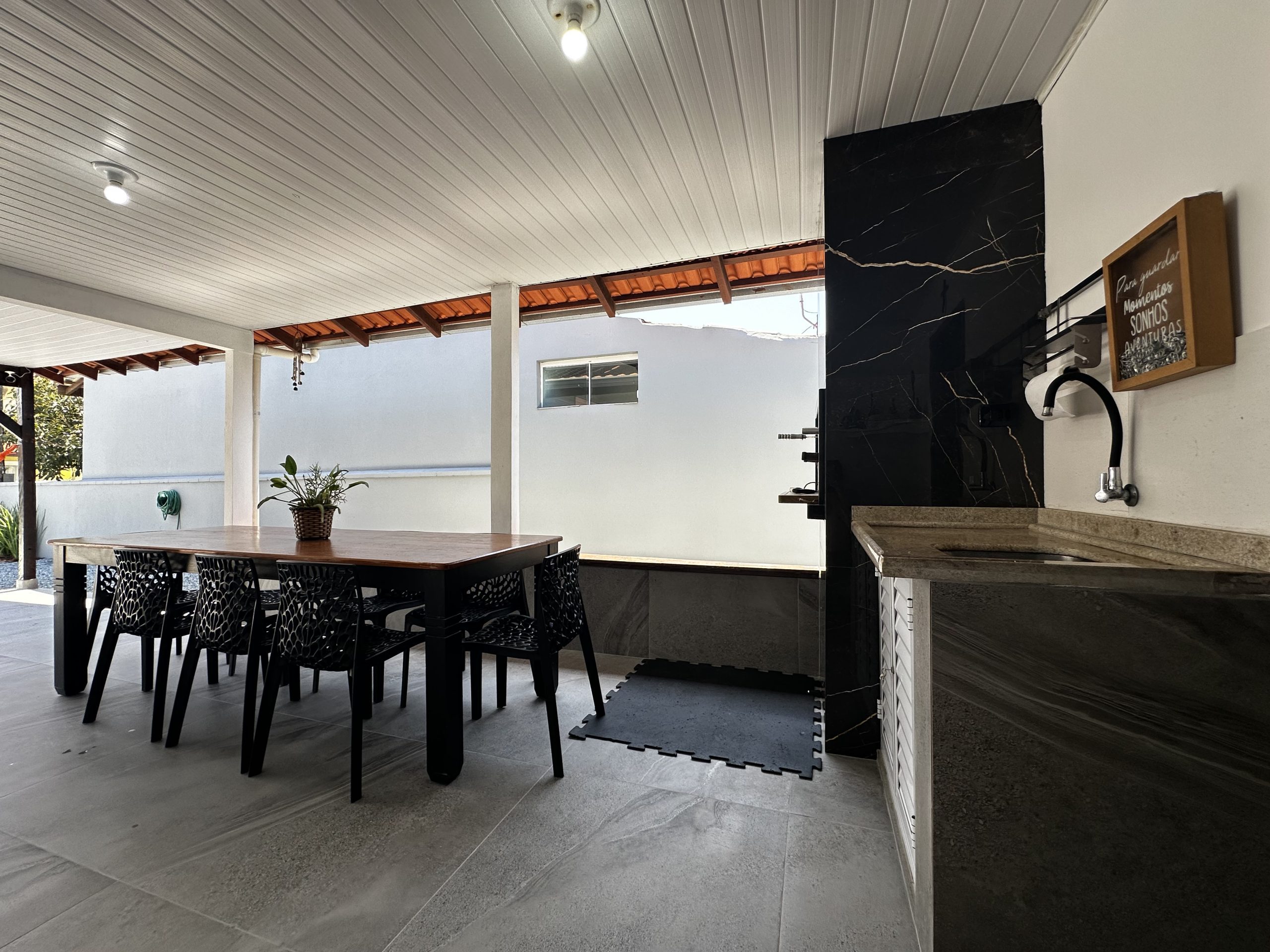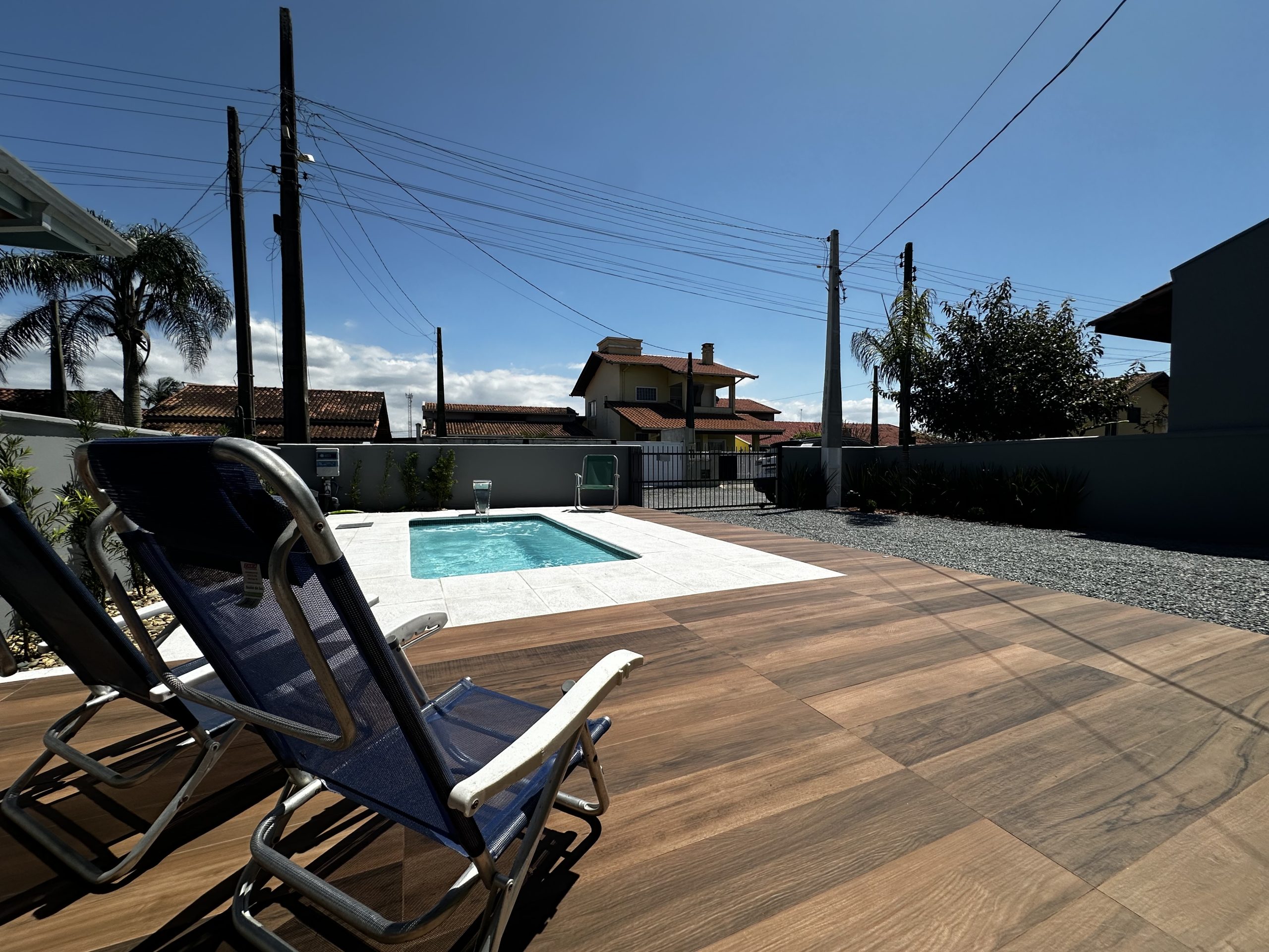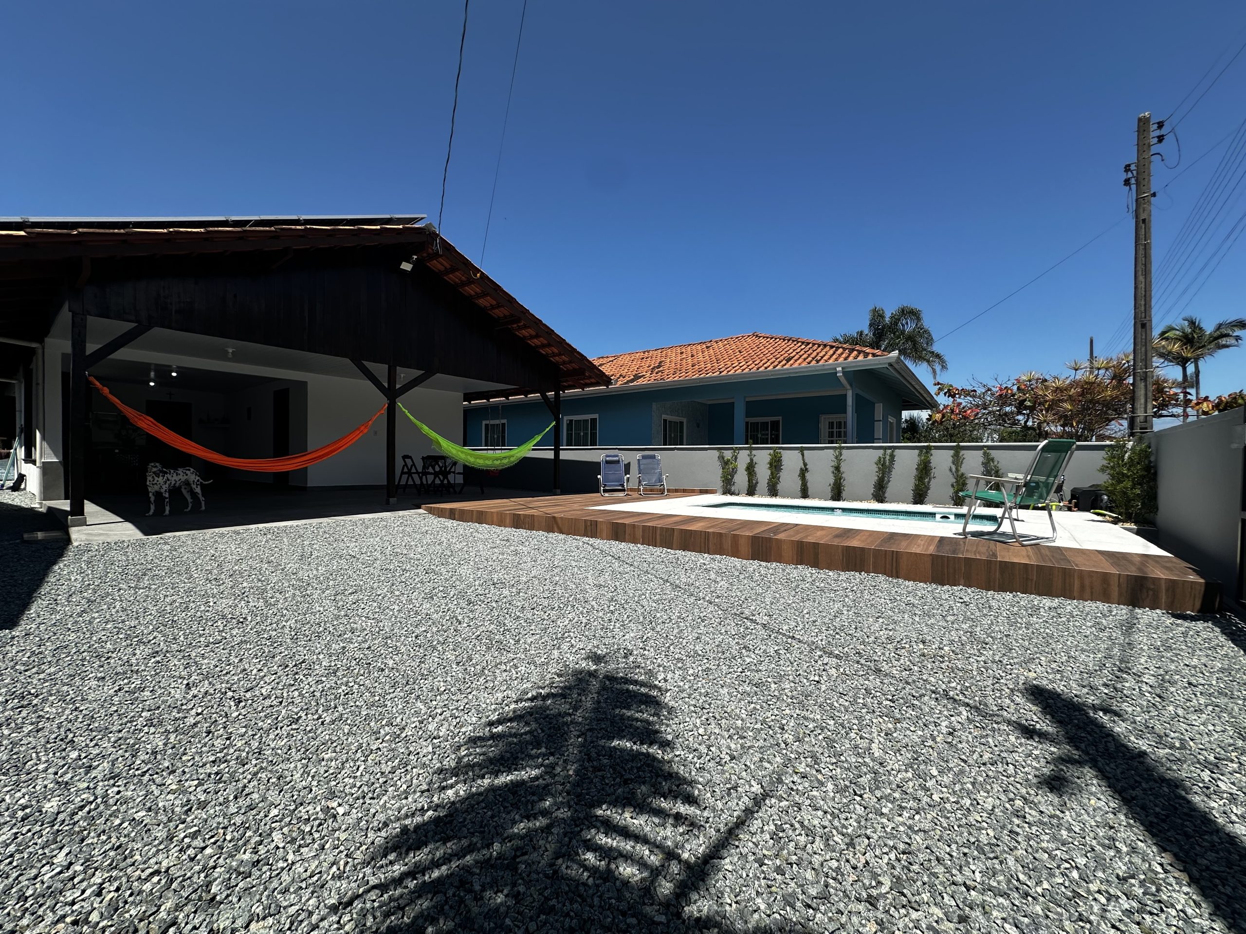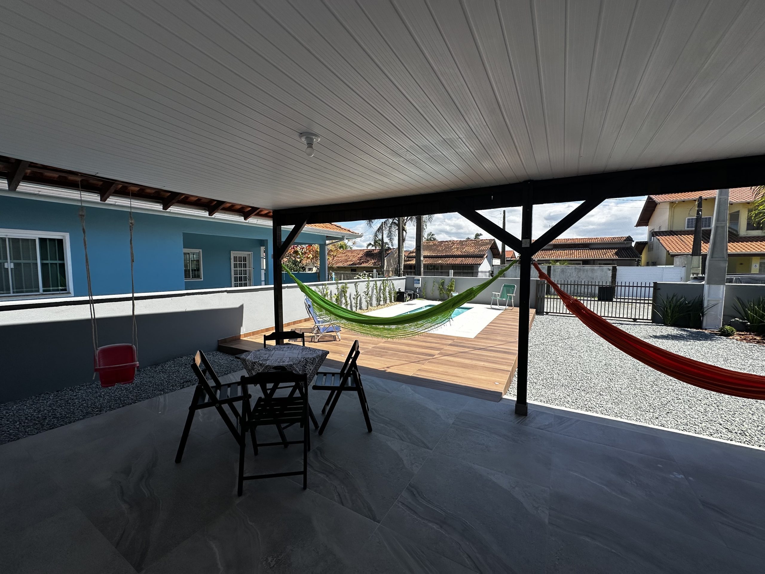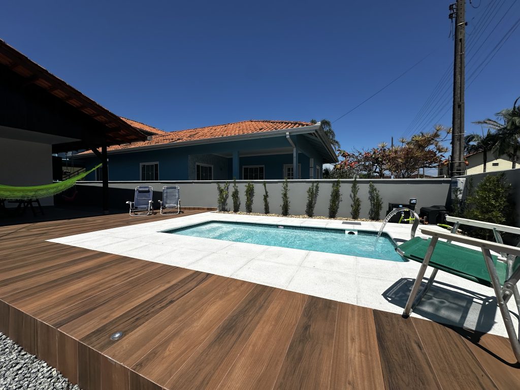 Tradicional casa de praia com piscina aquecida, muito bem equipada e confortável, localizado à 1 quadra do mar em Balneário Barra do Sul. Composto por 3 quartos sendo 1 suite, todos com ar condicionado split novos. Sala com TV 42″ Smart e canais à cabo, filmes e séries. Fornecemos roupas de cama e banho para todos os hóspedes. . Área externa conta com uma varanda com churrasqueira à carvão, mesa para refeições, além de 5 pontos de rede. No quintal cabe 2 carros tranquilamente.