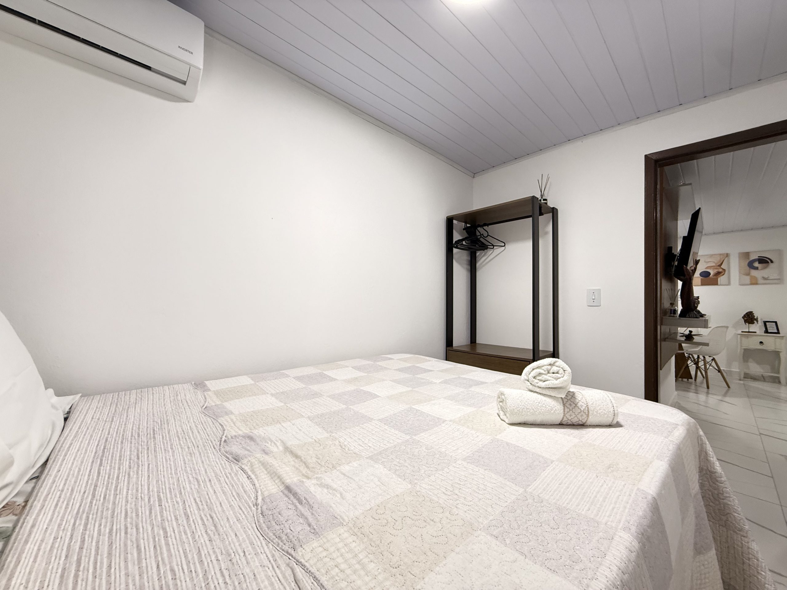 – SUÍTE 1: cama casal + guarda roupas + ar condicionado