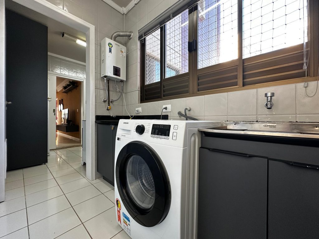 – Área de serviço com maquina de lavar e tanque