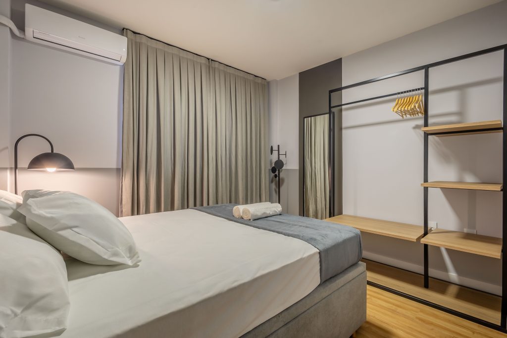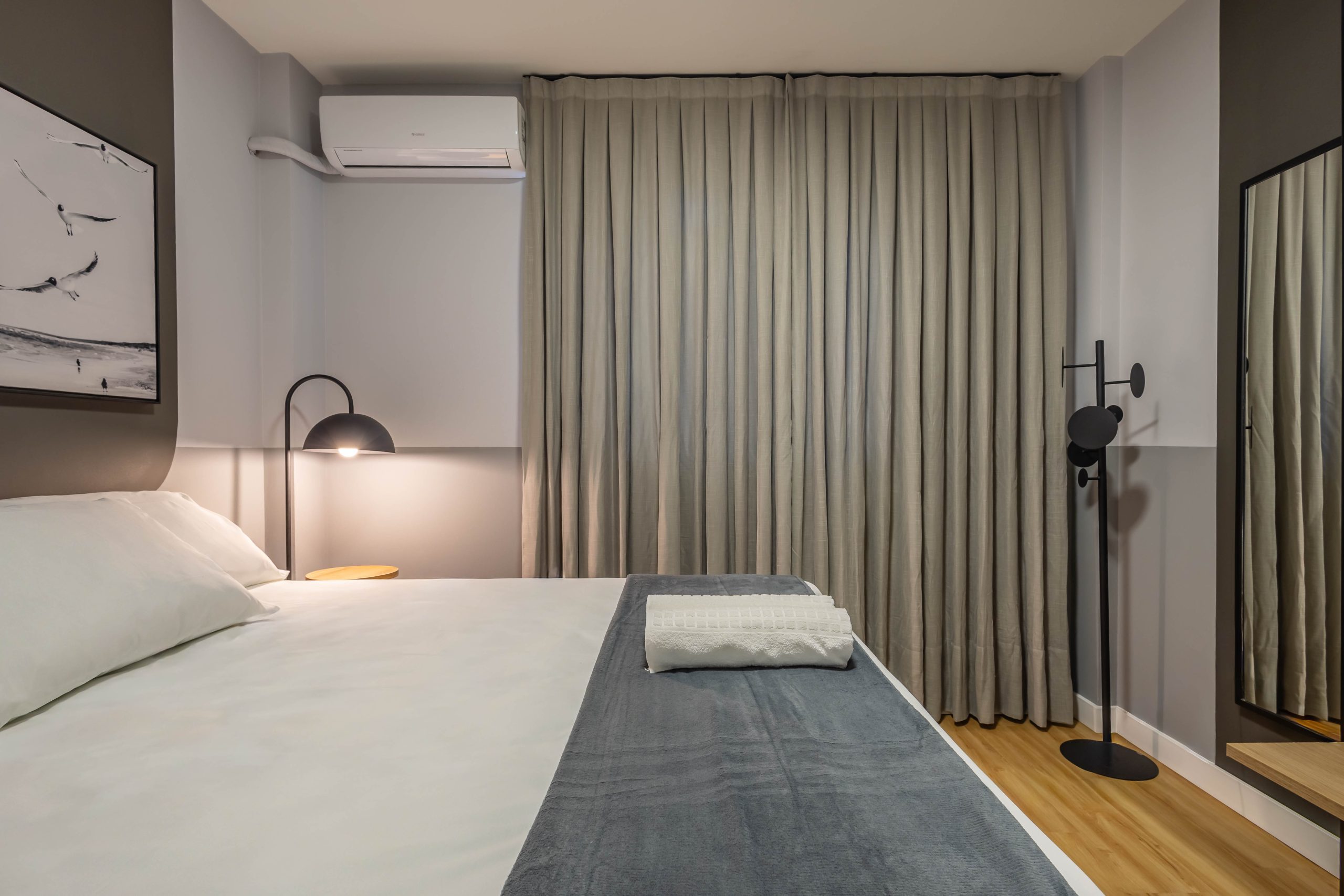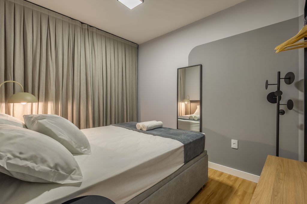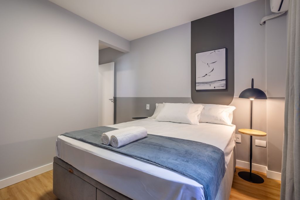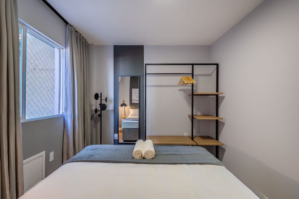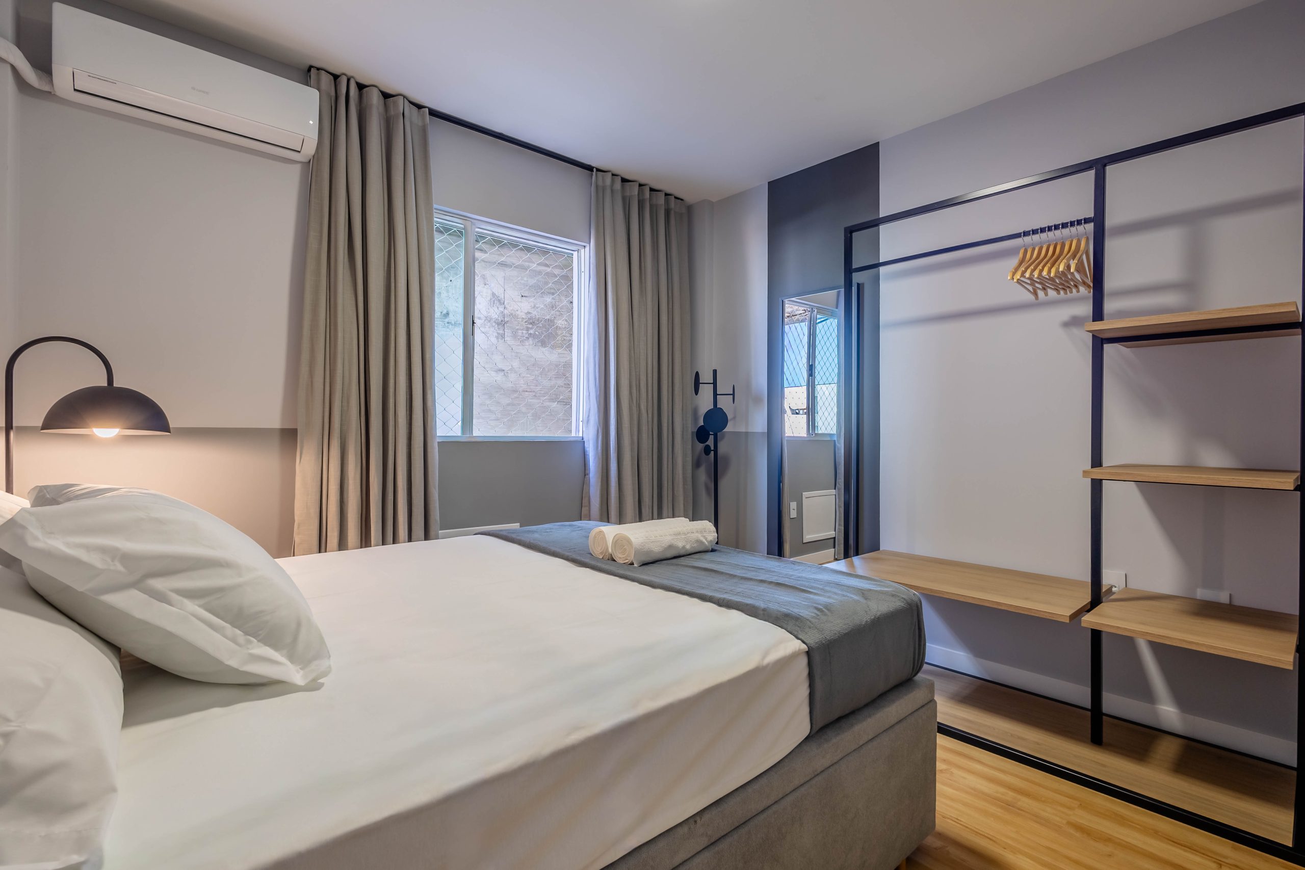 – 2 quartos climatizados (1 suíte), ambos com camas de casal novas, cortinas blackout e ar-condicionado split.