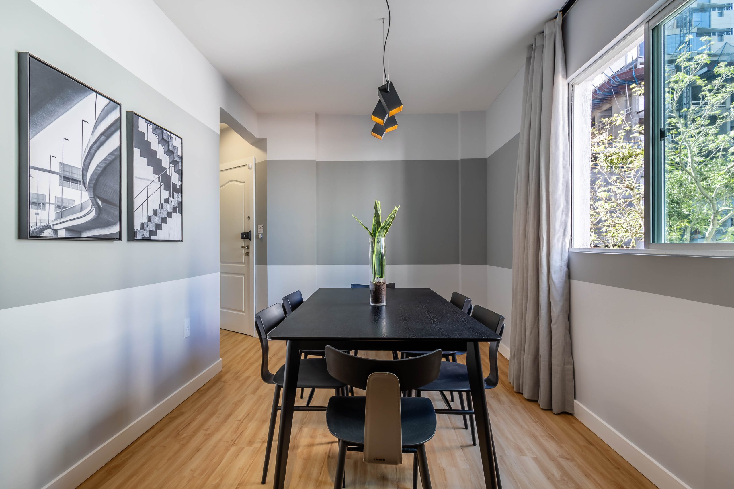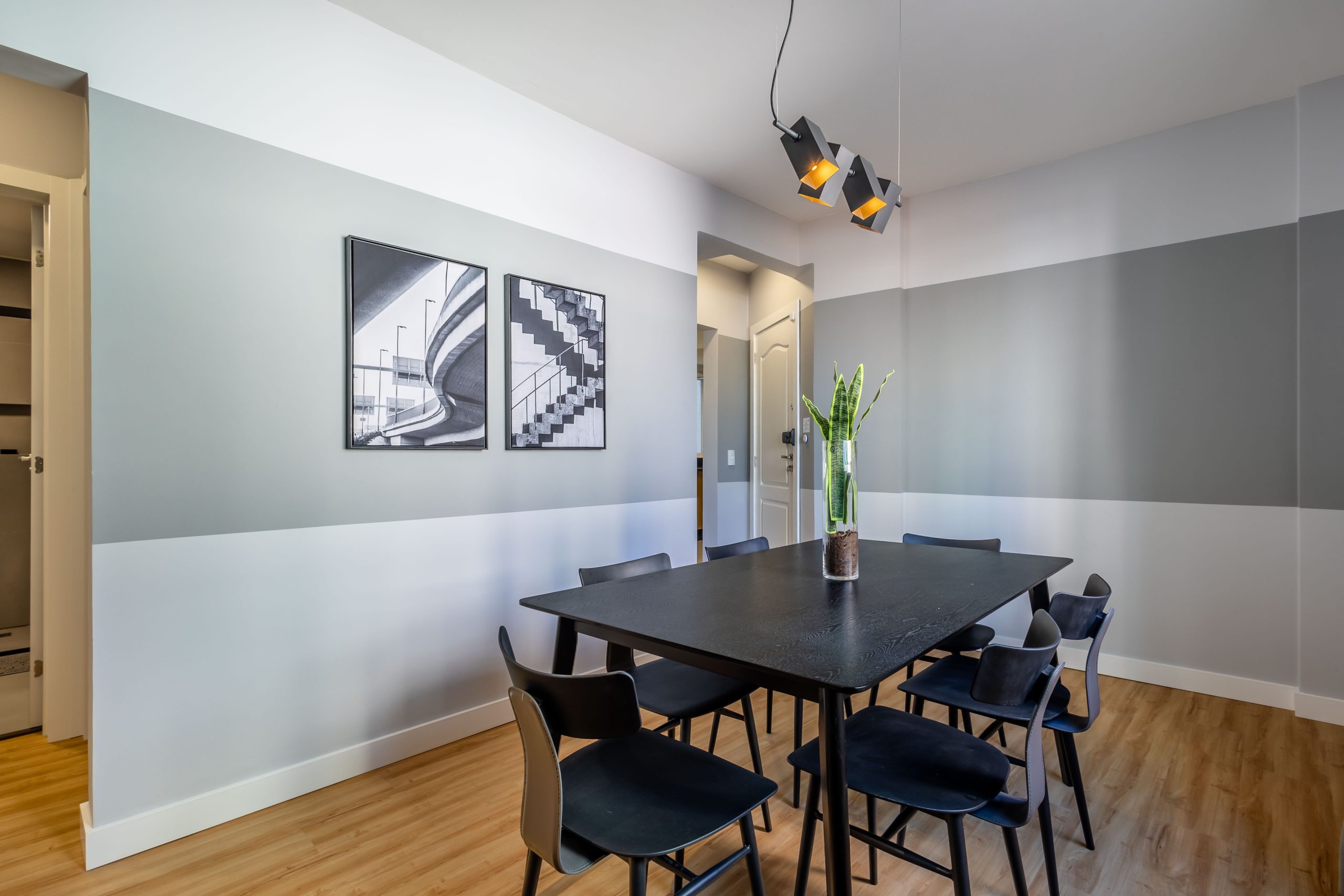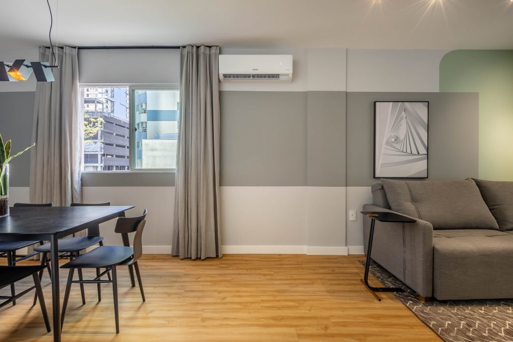 – Sala de estar ampla com ar-condicionado, TV Smart de 50″, sofá novo e mesa de jantar para 6 pessoas.
