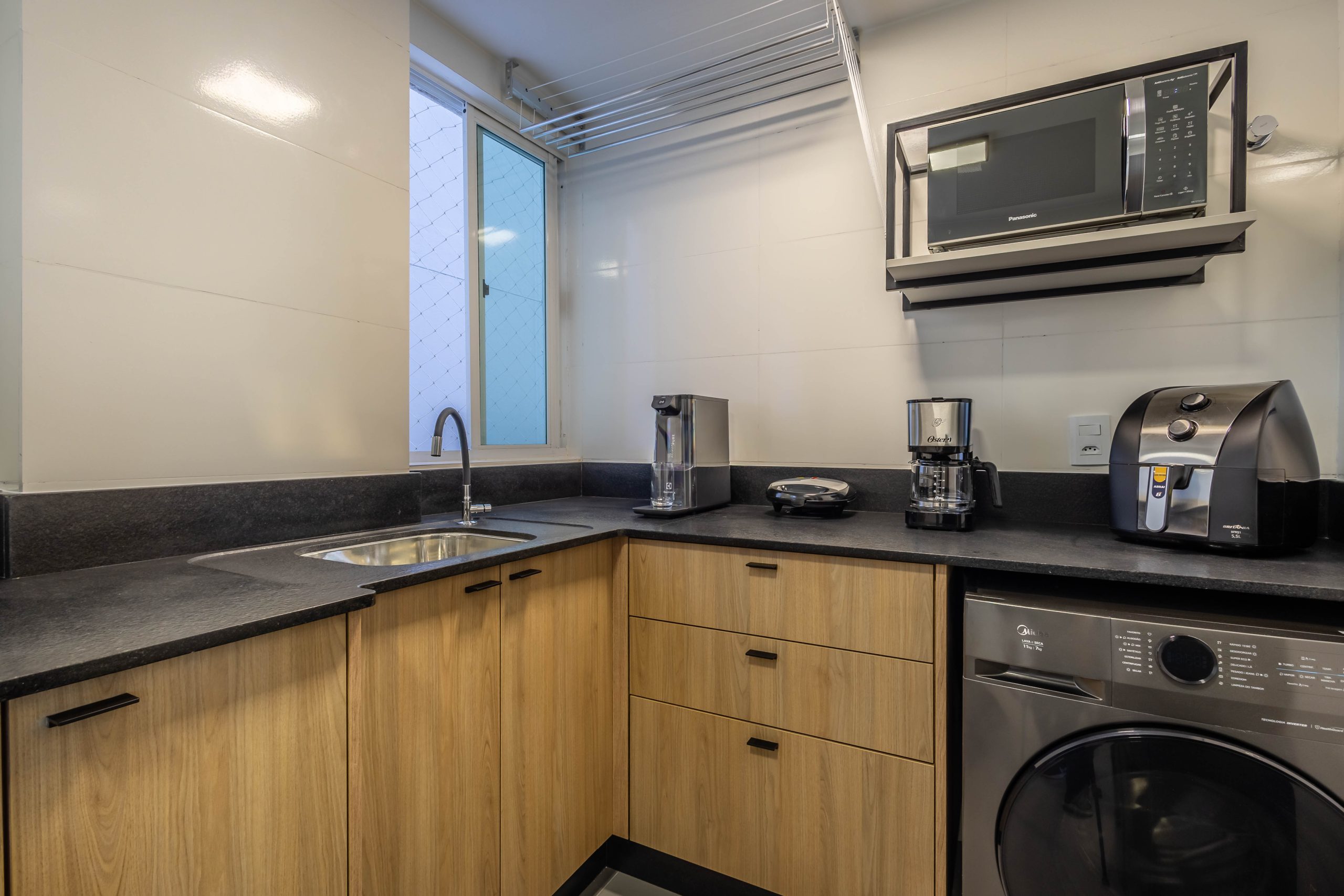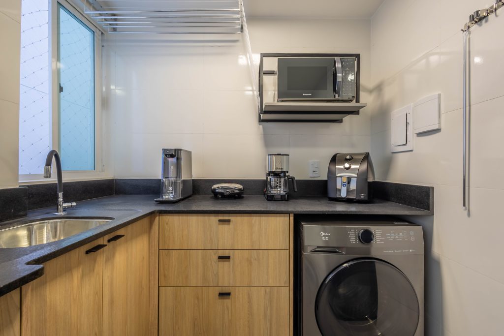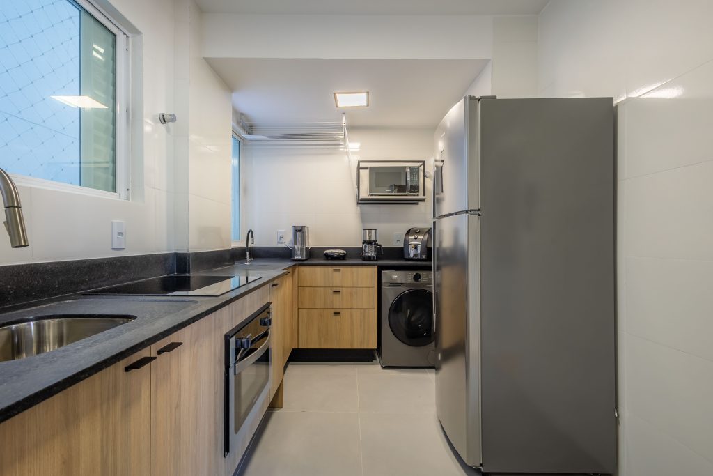 – Cozinha completíssima, equipada com Geladeira duplex nova, Cooktop e forno elétrico, Airfryer, cafeteira elétrica, liquidificador e filtro de água potável.