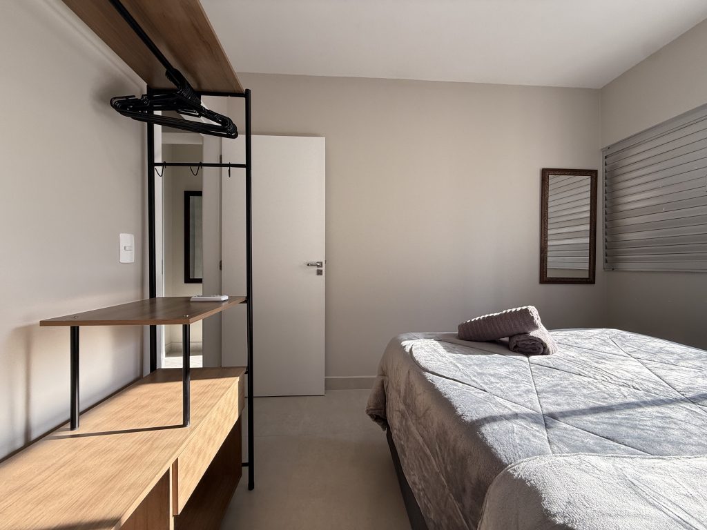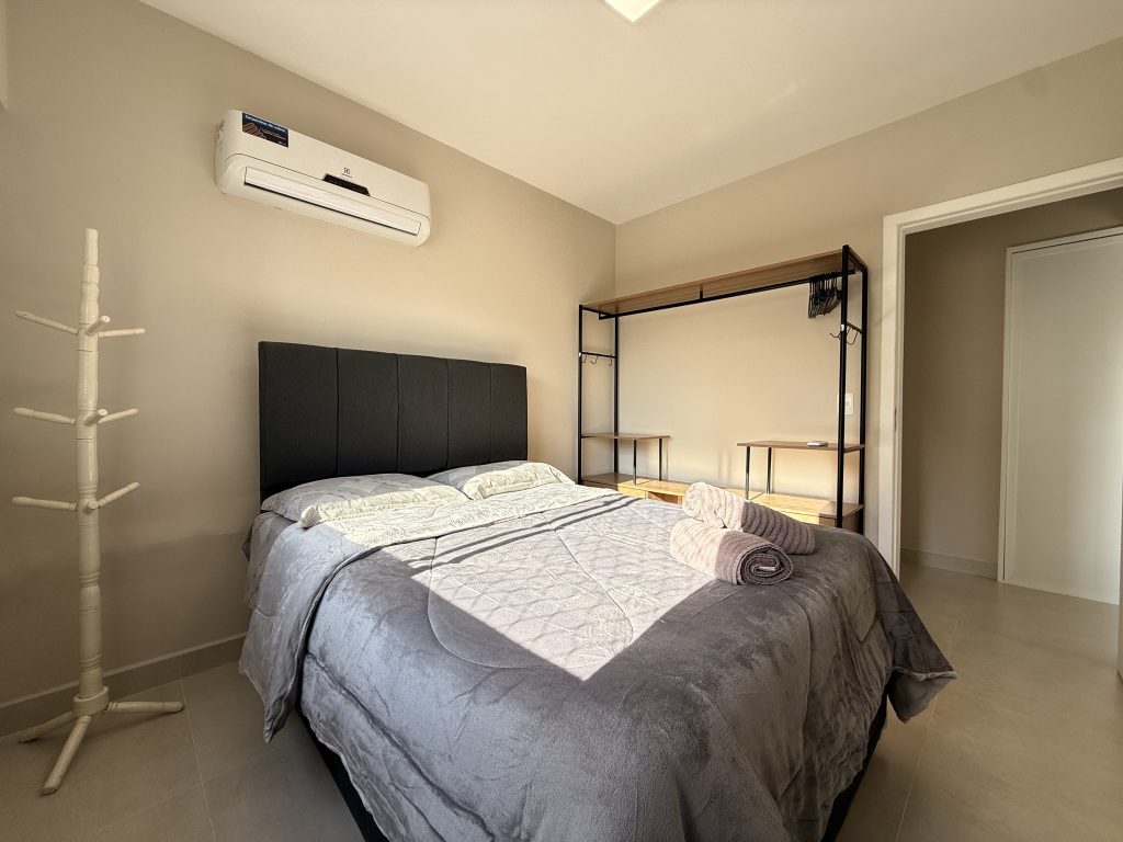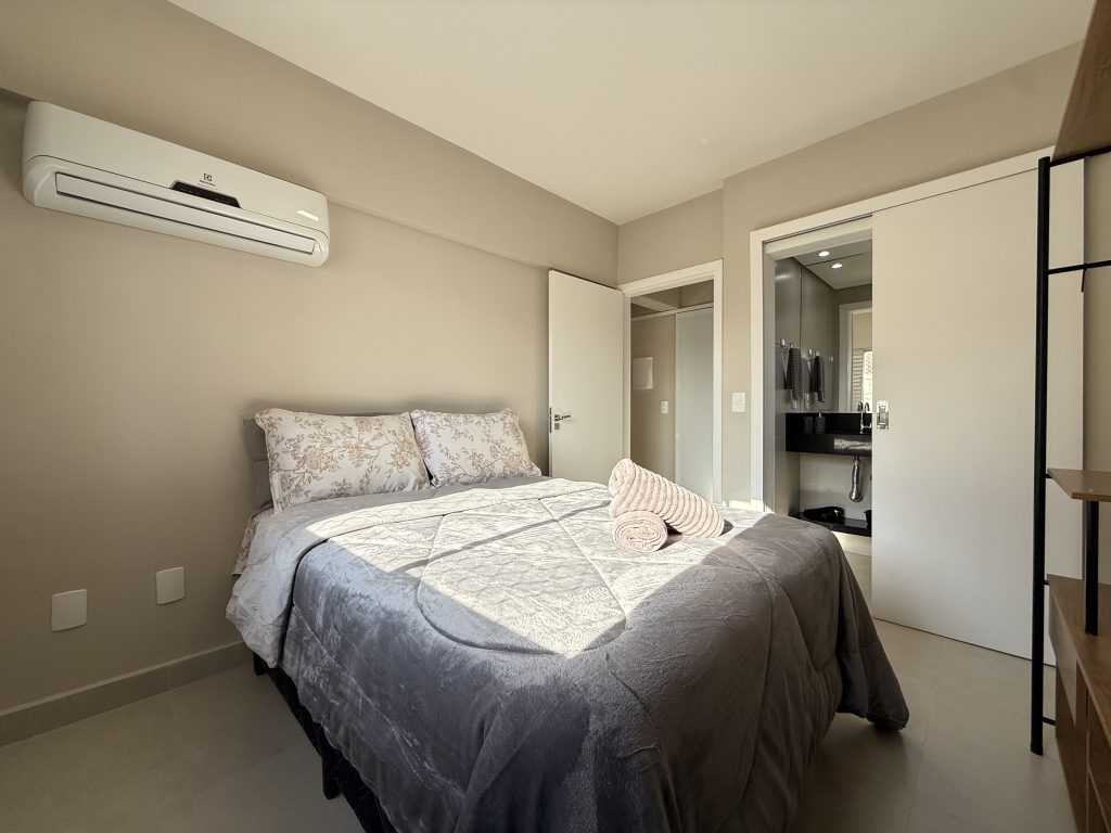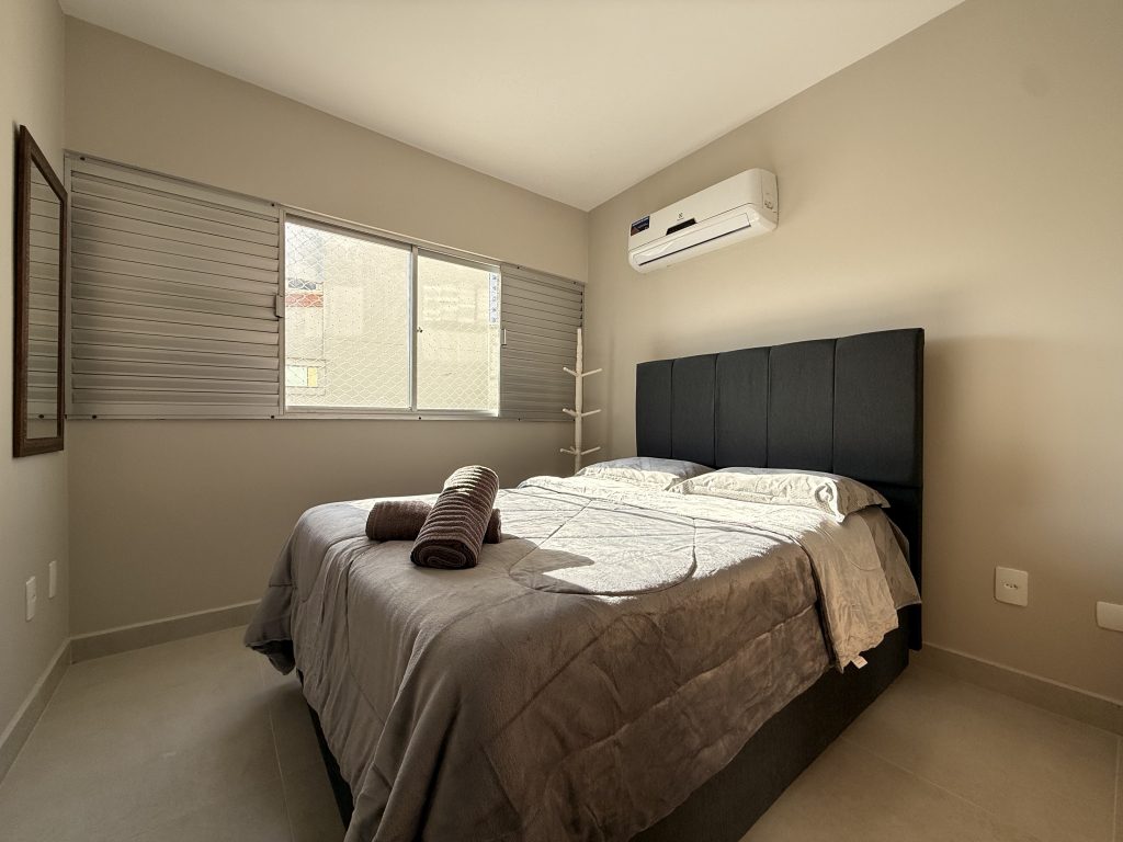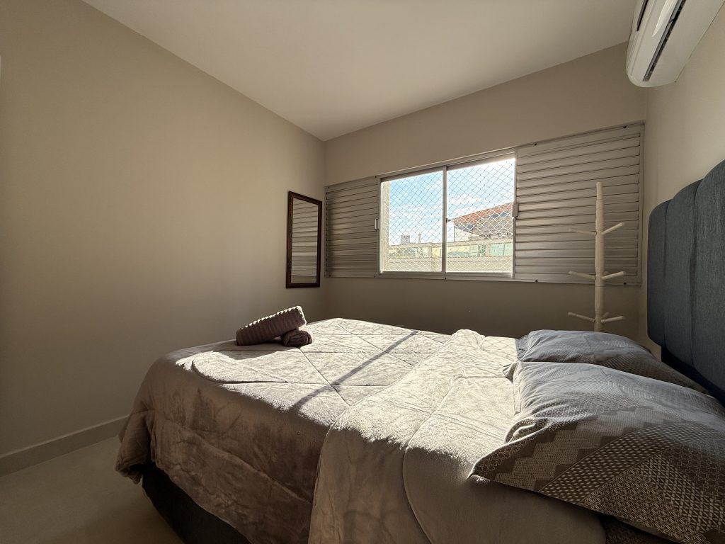 Este apartamento está estrategicamente localizado no centro de Balneário Camboriú, a apenas uma quadra do mar, oferecendo uma localização ideal para explorar a cidade sem a necessidade de carro. Nos arredores há muitas opções de bares, restaurantes e supermercados, além do Shopping Atlântico que fica a apenas uma quadra de distância. O imóvel é composto por dois quartos, sendo um deles uma suíte, ambos equipados com cama de casal e ar-condicionado, com espaço adicional para um berço, que fornecemos. A sala também possui ar-condicionado, um sofá confortável e uma TV Smart de 47″. As janelas contam com telas de proteção, garantindo segurança. A cozinha está muito bem equipada, e a velocidade da Internet é de 400MB. Além disso, há uma garagem privativa adequada para caminhonetes.