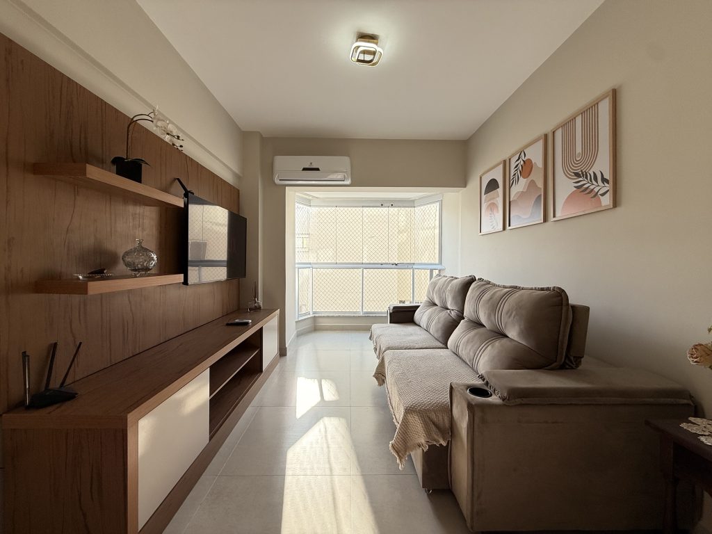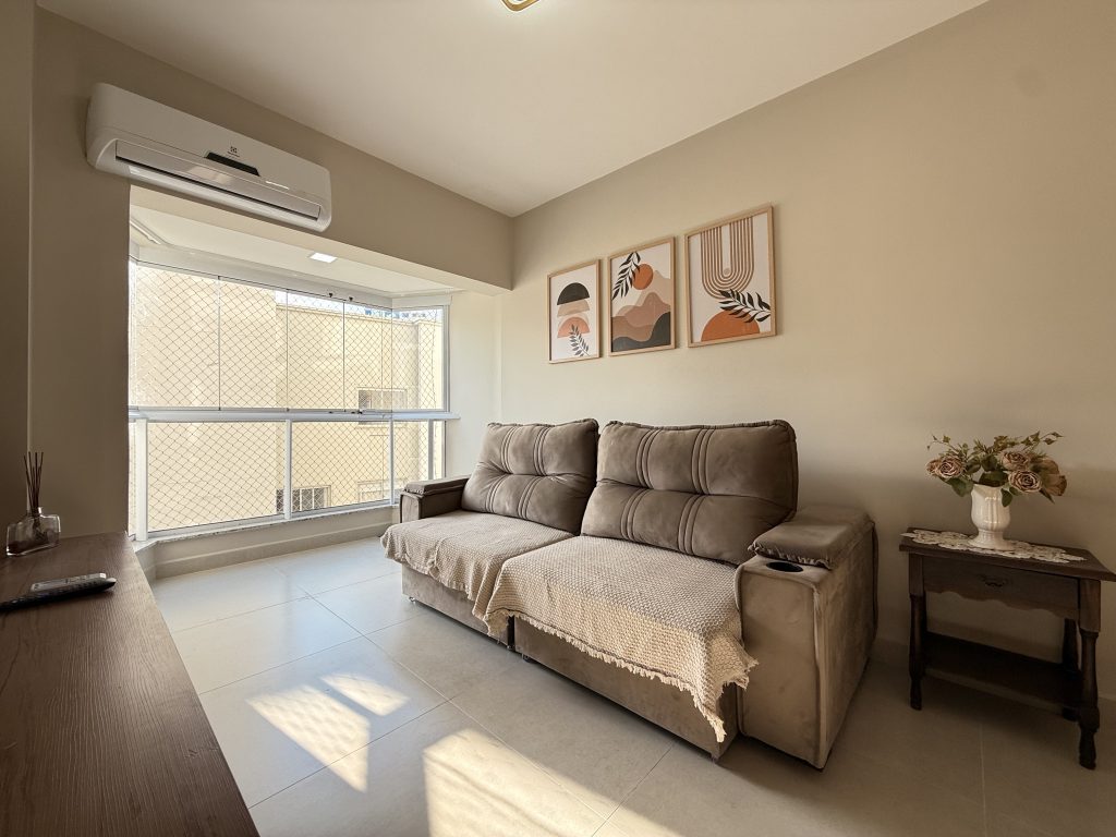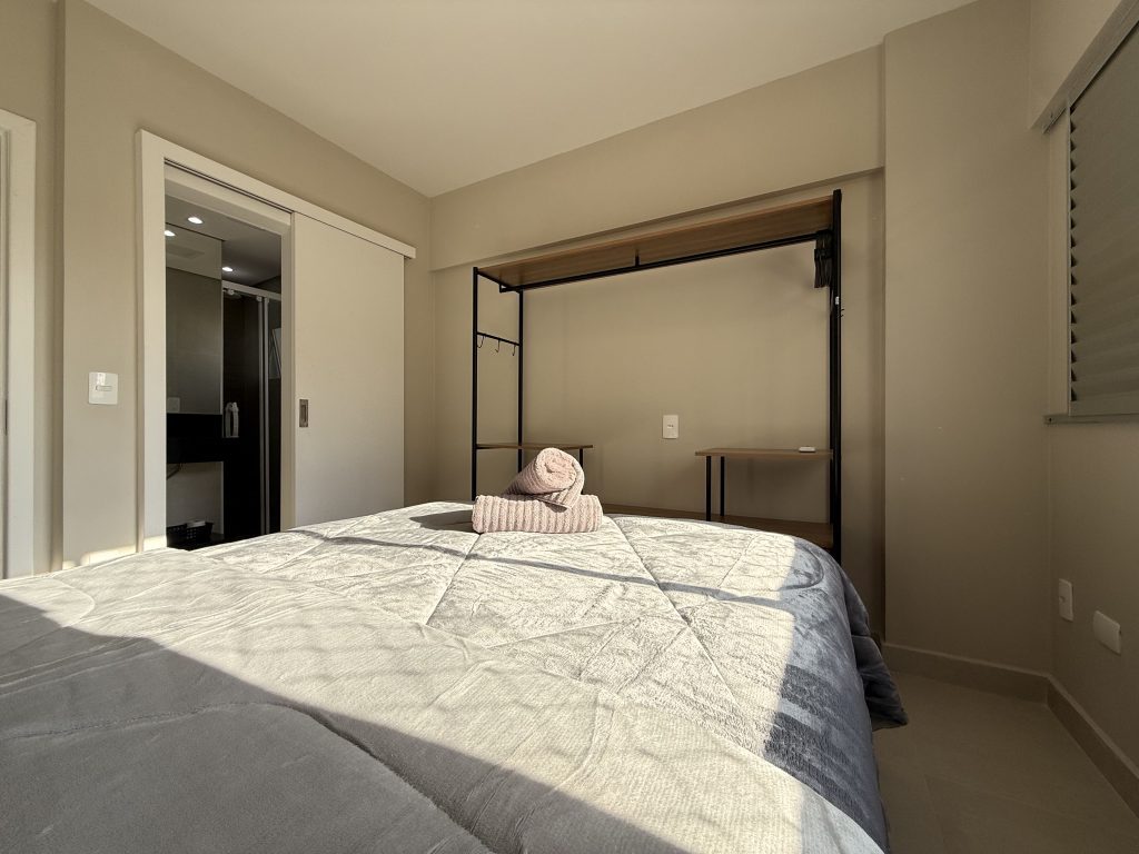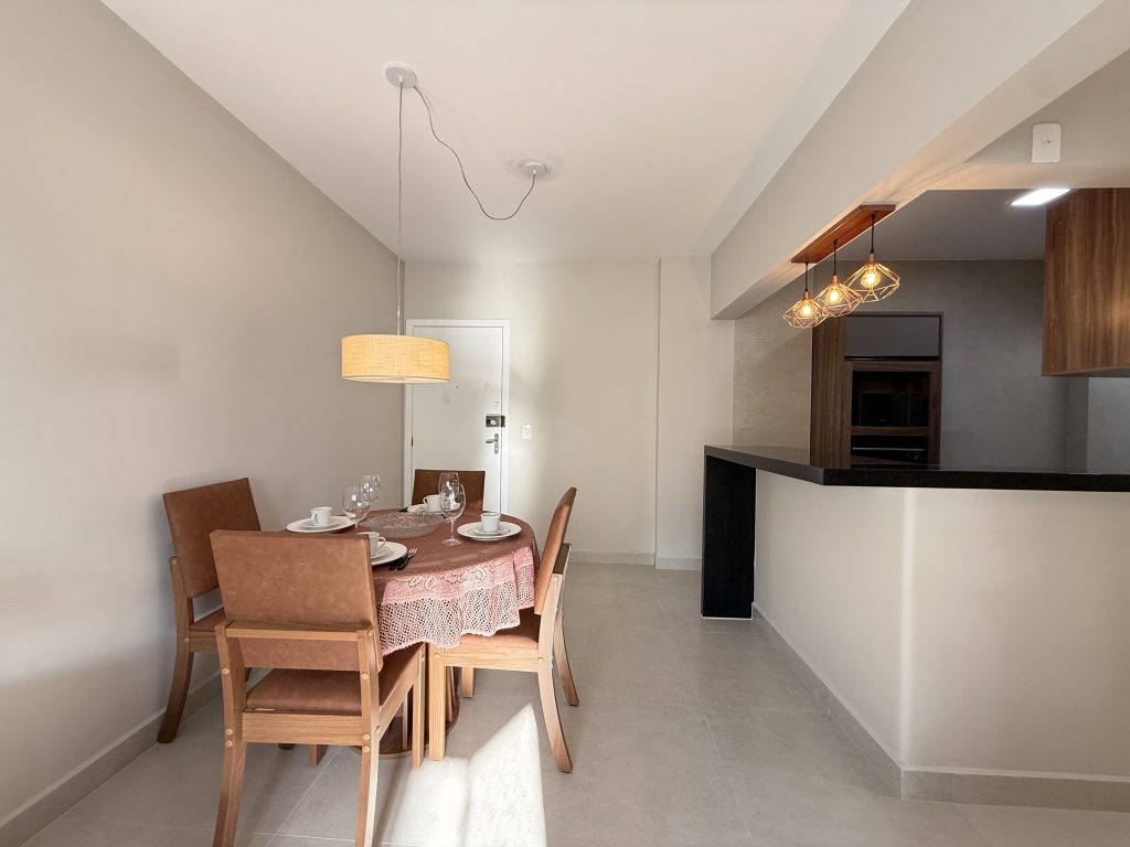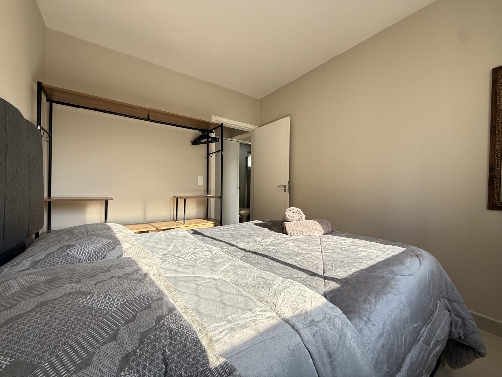 Este apartamento está estrategicamente localizado no centro de Balneário Camboriú, a apenas uma quadra do mar, oferecendo uma localização ideal para explorar a cidade sem a necessidade de carro. Nos arredores há muitas opções de bares, restaurantes e supermercados, além do Shopping Atlântico que fica a apenas uma quadra de distância. O imóvel é composto por dois quartos, sendo um deles uma suíte, ambos equipados com cama de casal e ar-condicionado, com espaço adicional para um berço, que fornecemos. A sala também possui ar-condicionado, um sofá confortável e uma TV Smart de 47″. As janelas contam com telas de proteção, garantindo segurança. A cozinha está muito bem equipada, e a velocidade da Internet é de 400MB. Além disso, há uma garagem privativa adequada para caminhonetes.