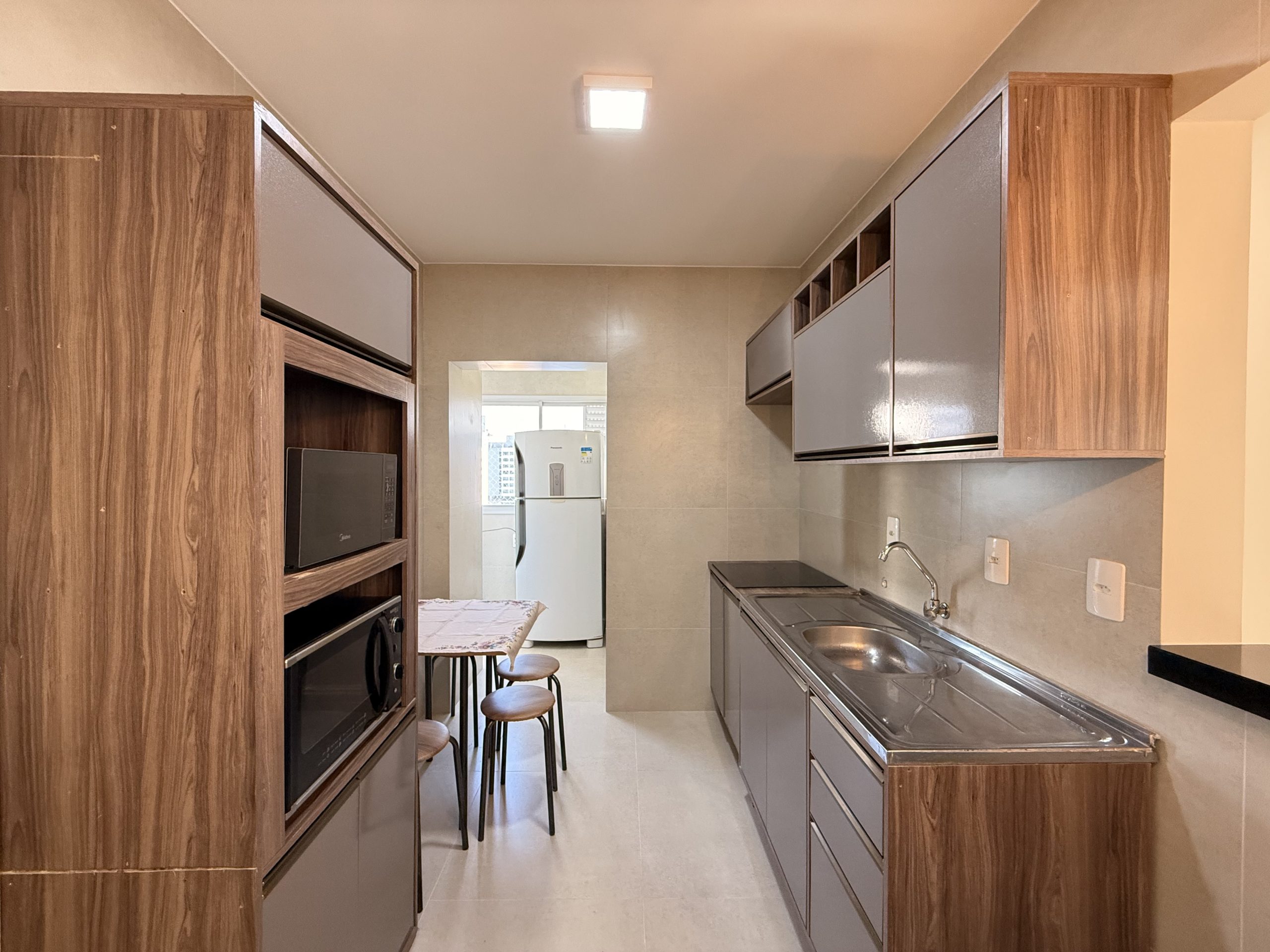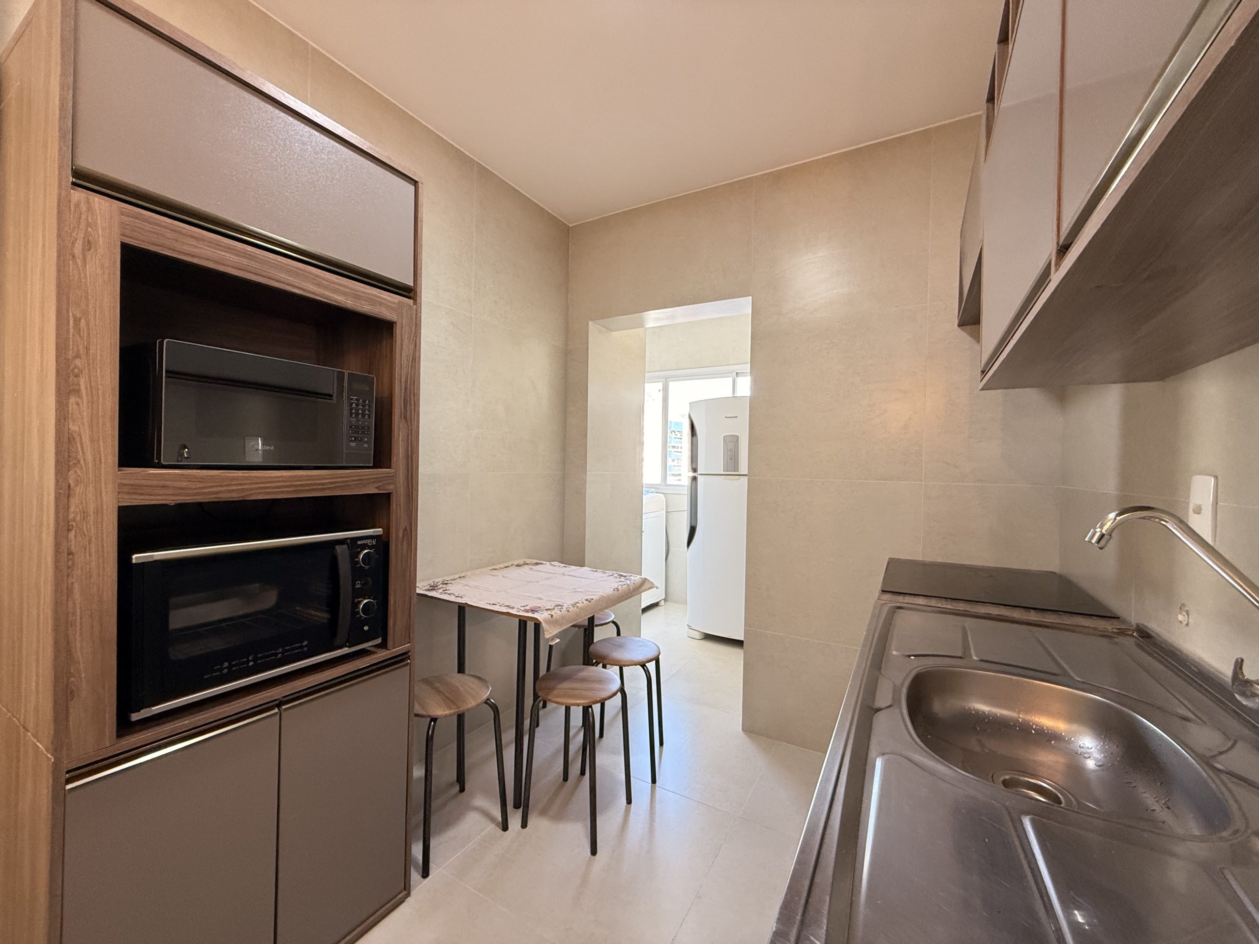 – Cozinha muito bem equipada com tudo que precisar para curtas e longas estadia, geladeira duplex, microondas, forno, cafeteira elétrica, liquidificador, sanduicheira.