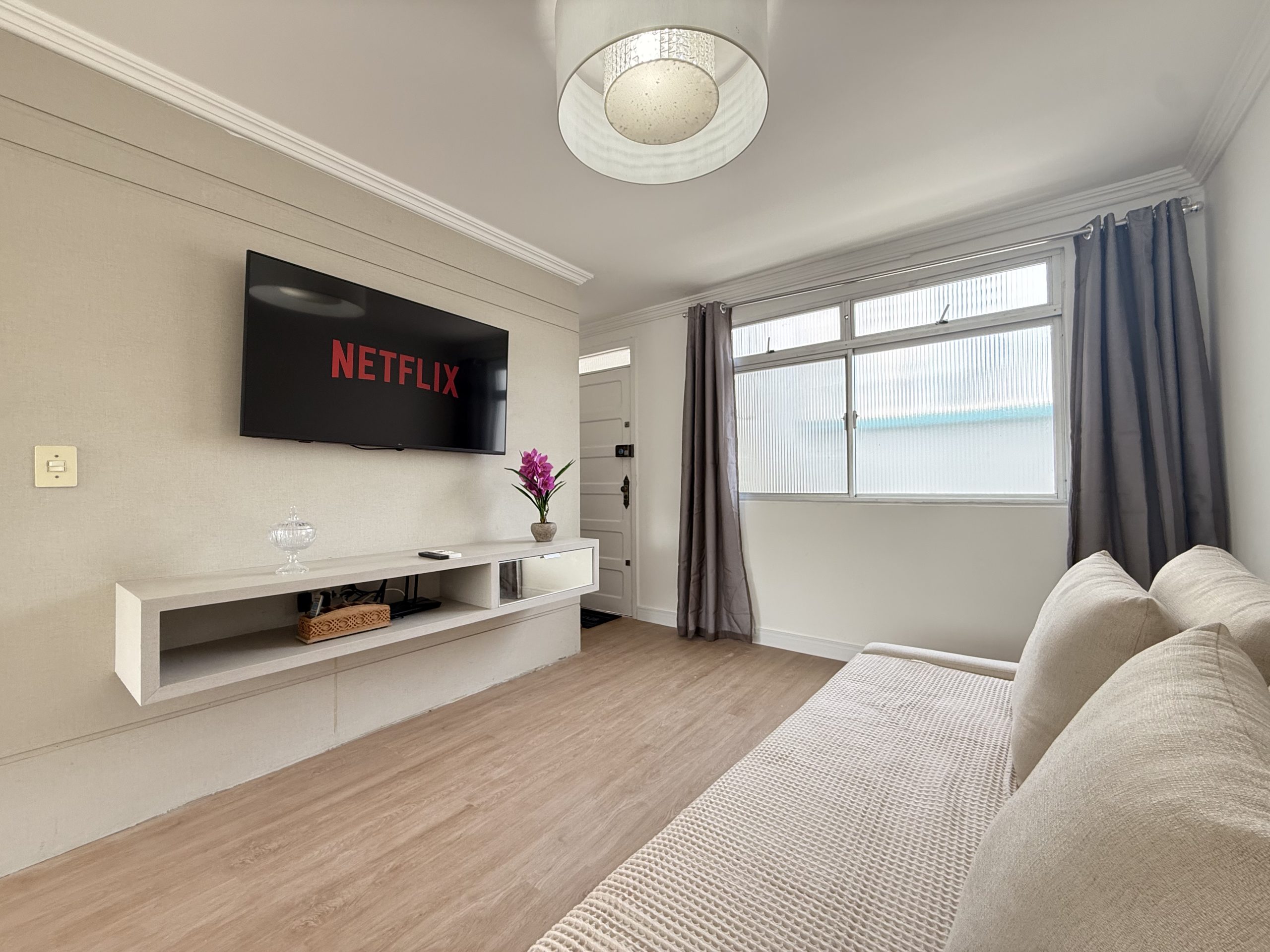 Recém-reformado e montado exclusivamente para hóspedes, este apartamento no Condomínio Portal de Camboriú é sinônimo de conforto e lazer completo. 2 quartos sendo 1 suíte, com camas novas e ar-condicionado em todos os ambientes. Sala ampla com Smart TV 50″, excelente sofá-cama e cozinha super equipada. O grande diferencial é o acesso total à área de lazer do condomínio, algo raríssimo na região. Portaria 24h com Selfie Check-in e vaga de garagem fácil acesso. Reserve já e garanta sua estadia!