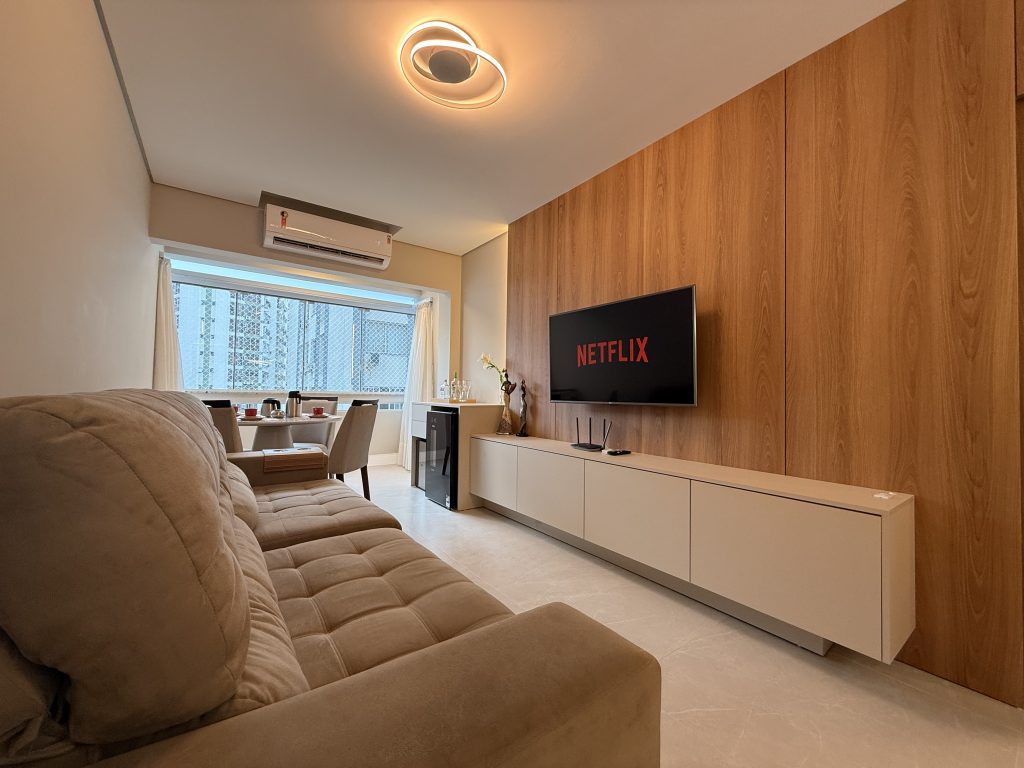 – Sala com sofá grande e confortável + ar condicionado 18.000 BTU