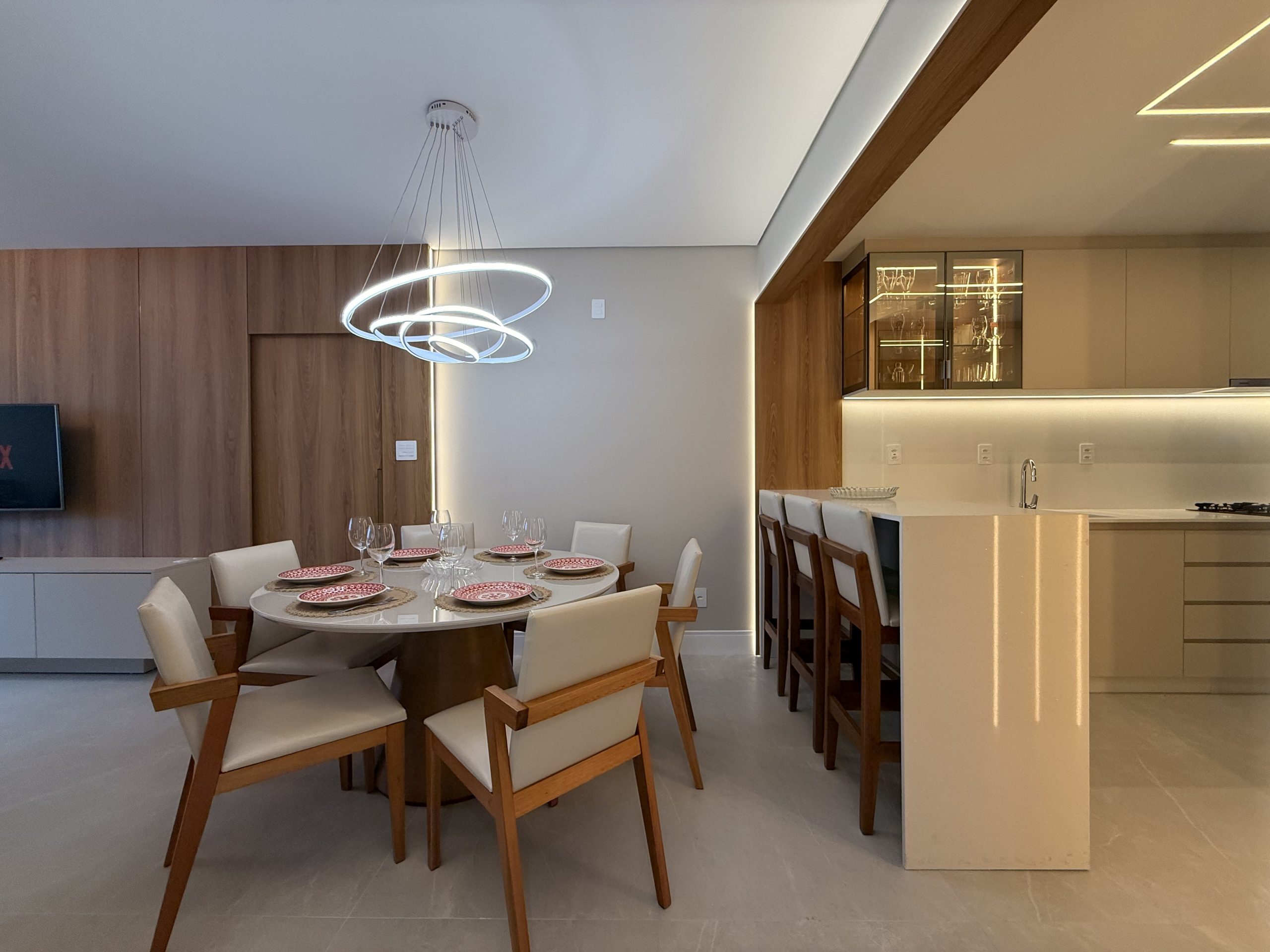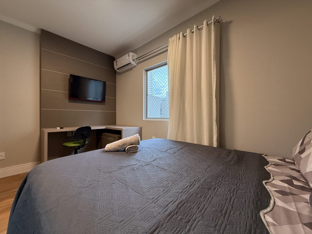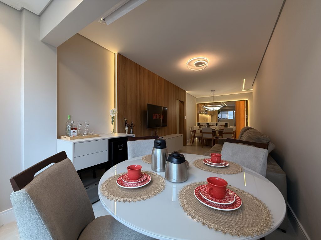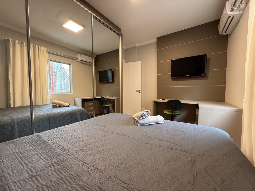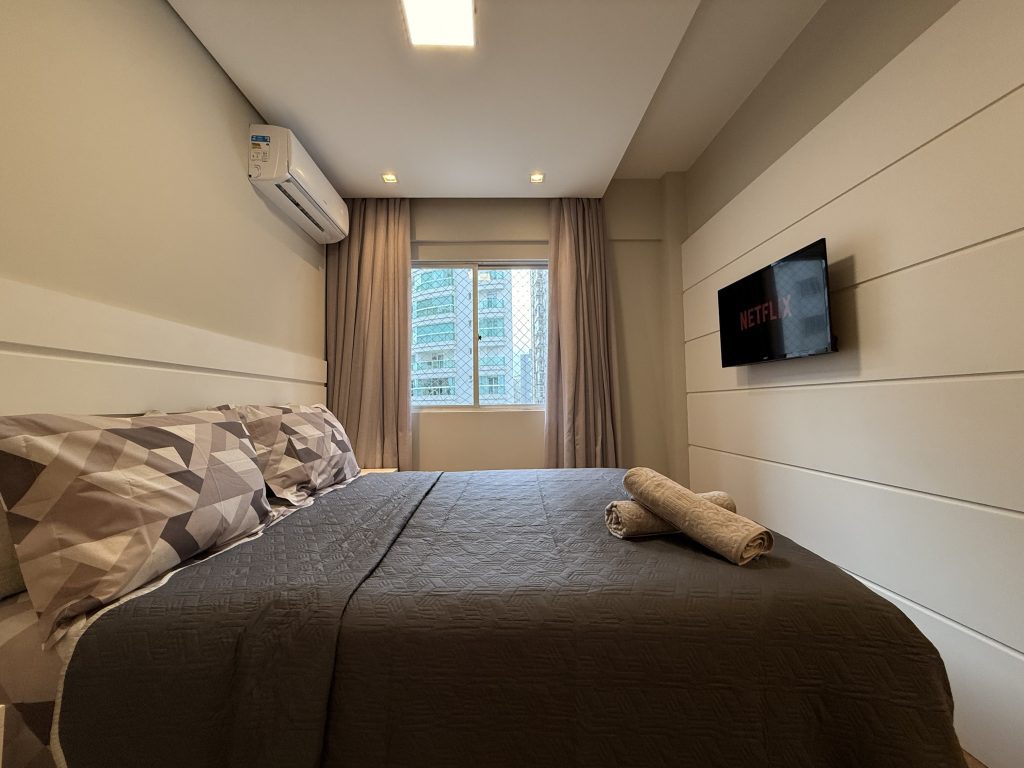 Maravilhoso apartamento tod reformado, situado no coração de Balneário Camboriú, ao lado do Shopping Atlântico e a apenas uma quadra do mar. Este imóvel é composto por três suítes, cada uma equipada com uma cama Queen size. A sala é espaçosa e integrada, apresentando uma mesa de jantar para seis pessoas, além de contar com um eficiente sistema de ar condicionado de 18.000 BTU. A cozinha está muito bem equipada, ideal tanto para estadias curtas quanto prolongadas. Todas as janelas dos quartos e da sala possuem tela de proteção. O apartamento também oferece uma garagem privativa e acesso Wi-Fi.