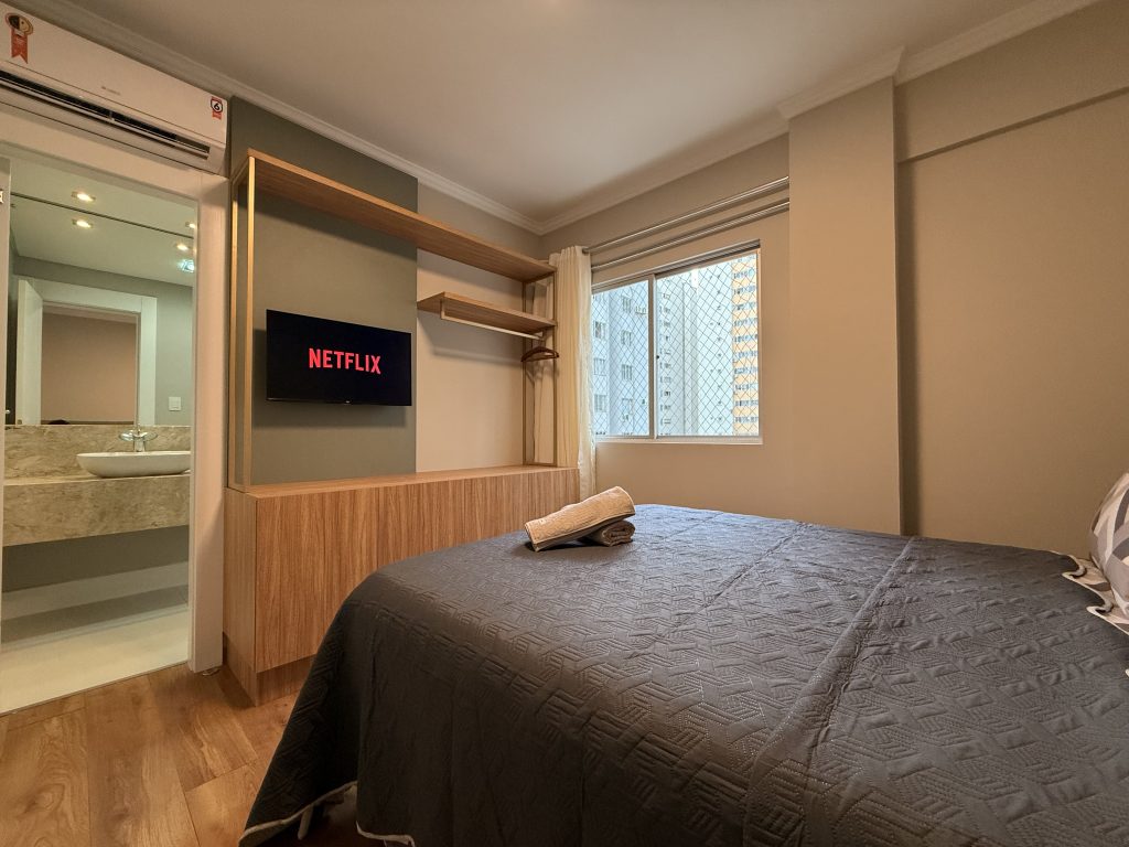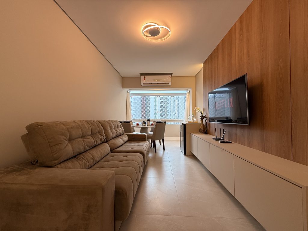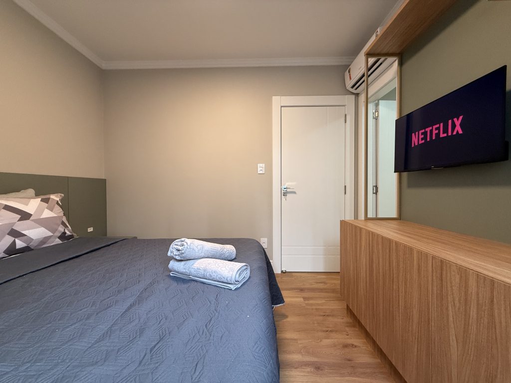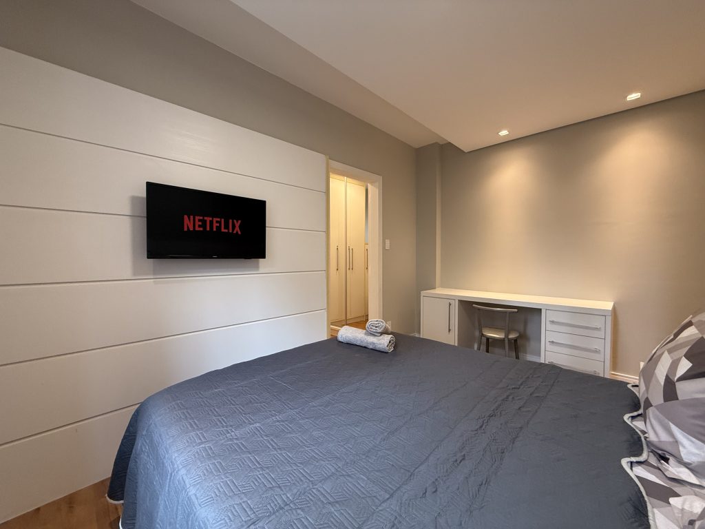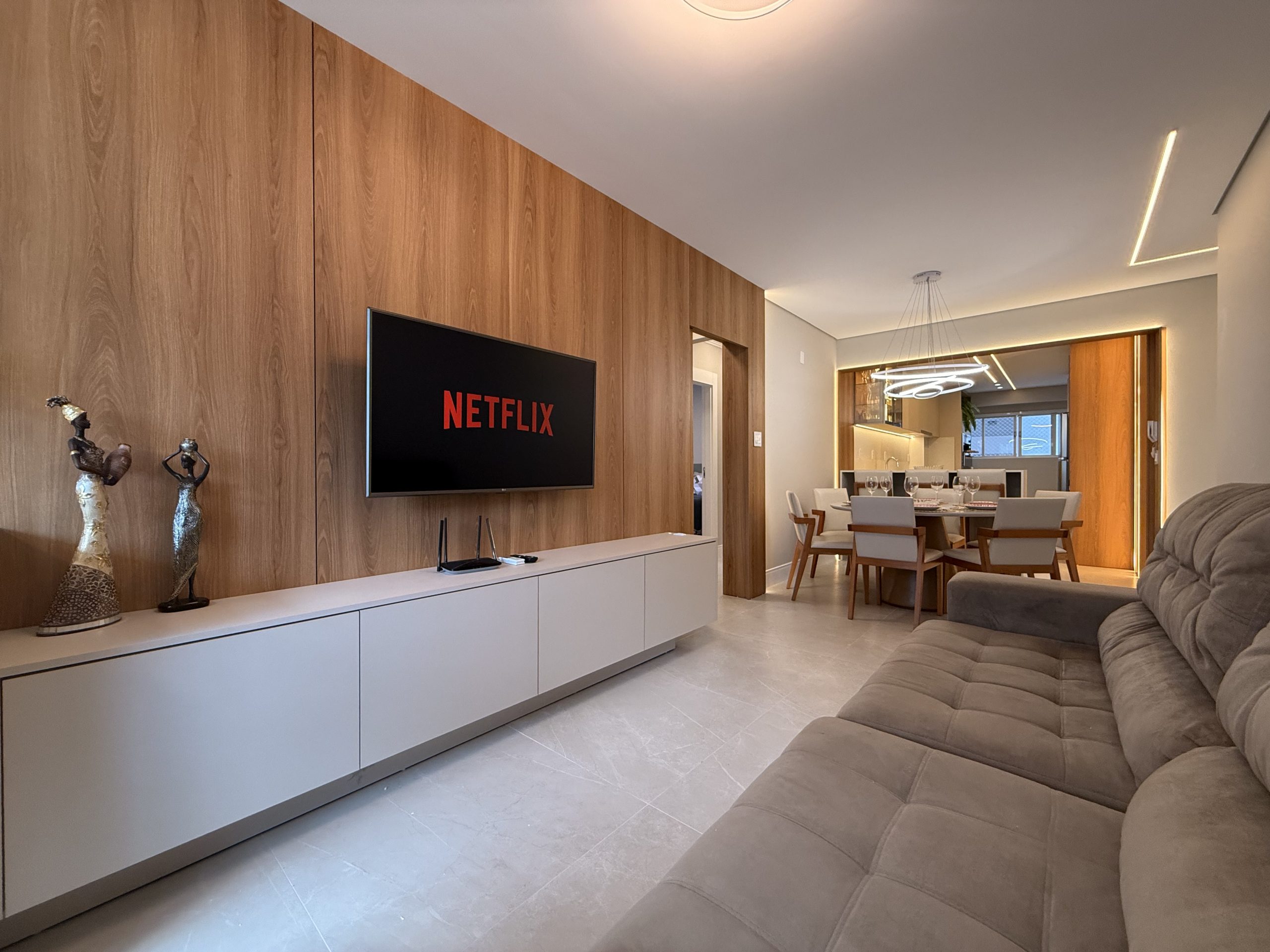 Maravilhoso apartamento tod reformado, situado no coração de Balneário Camboriú, ao lado do Shopping Atlântico e a apenas uma quadra do mar. Este imóvel é composto por três suítes, cada uma equipada com uma cama Queen size. A sala é espaçosa e integrada, apresentando uma mesa de jantar para seis pessoas, além de contar com um eficiente sistema de ar condicionado de 18.000 BTU. A cozinha está muito bem equipada, ideal tanto para estadias curtas quanto prolongadas. Todas as janelas dos quartos e da sala possuem tela de proteção. O apartamento também oferece uma garagem privativa e acesso Wi-Fi.