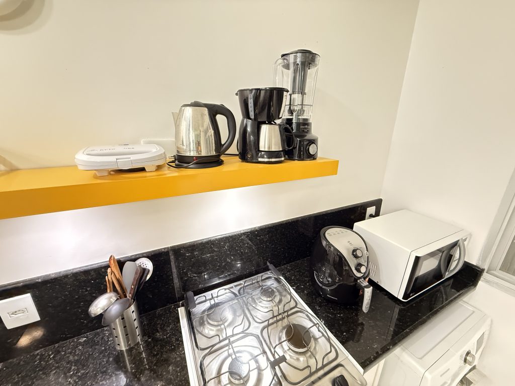 – Cozinha muito bem equipada com tudo que precisa para curtas e longas estadia, geladeira duplex nova, microondas, fogão, forno, cafeteira elétrica, airfryer, sanduicheira, talheres variados e louças diversas.
