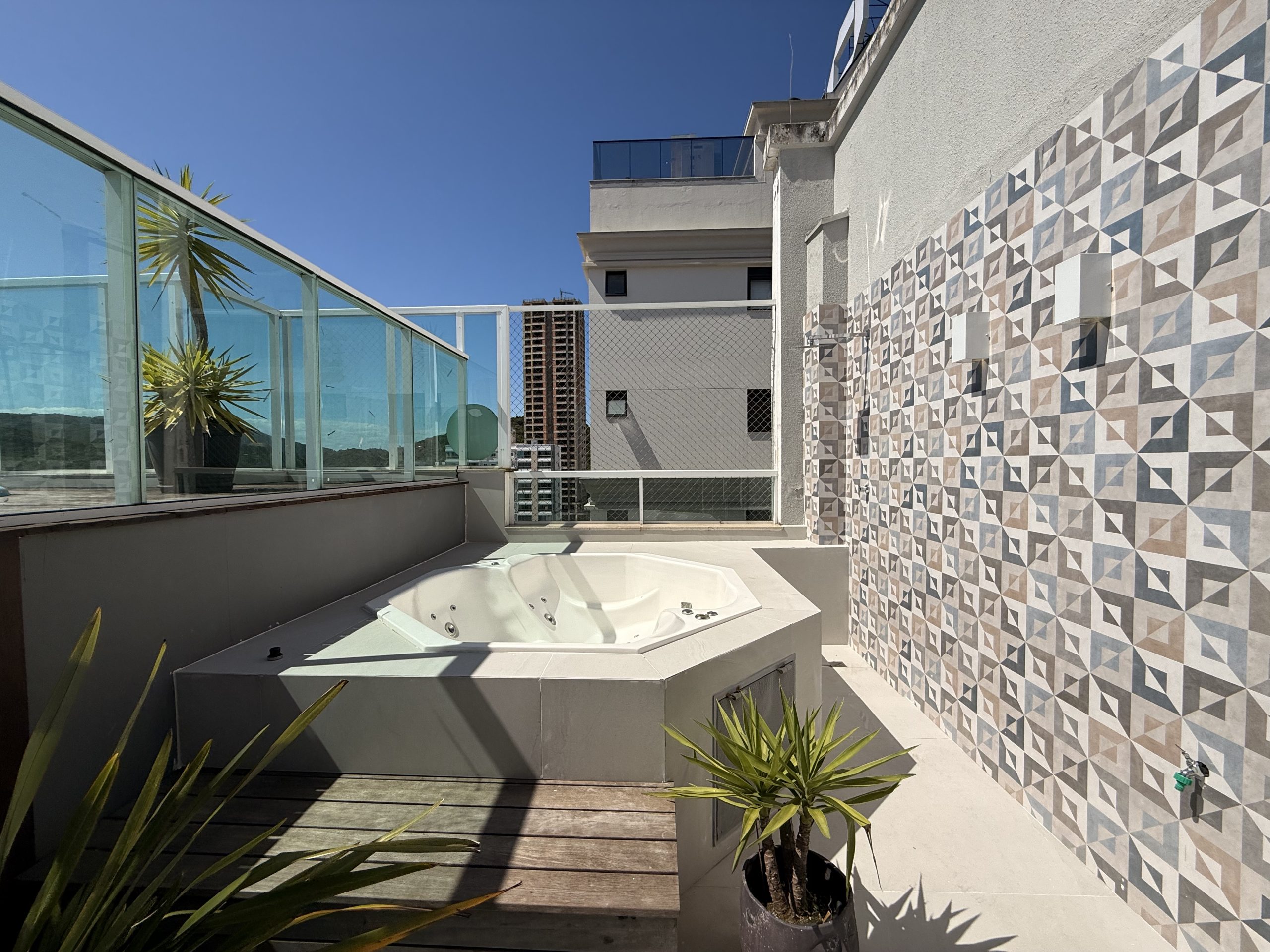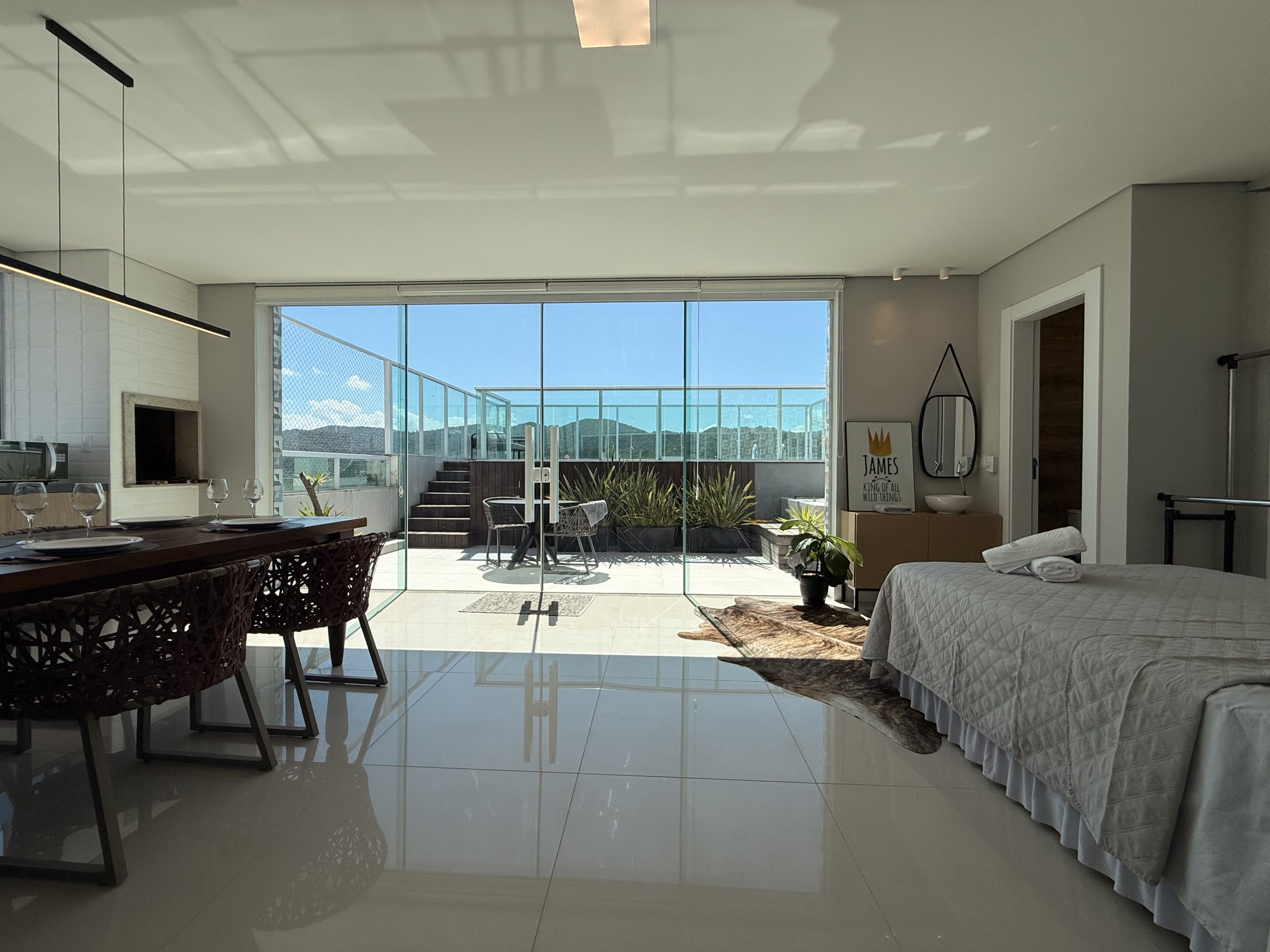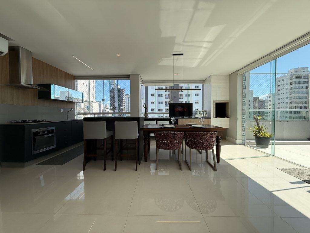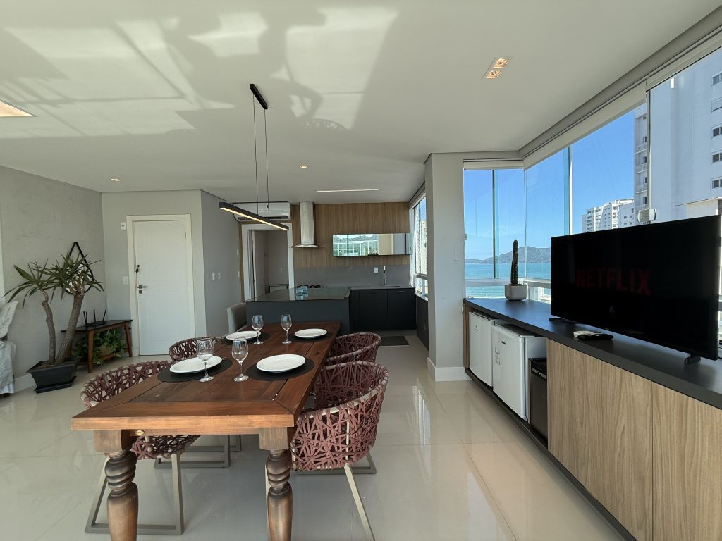 Maravilhoso Studio com piscina e Jacuzzi privativa, churrasqueira à carvão em cobertura prédio na barra norte da cidade, onde poderá desfrutar de um por do sol incrível e também de uma vista mar. Studio muito bem equipado para uma excelente estadia, cozinha completa, fornecemos roupas de cama e banho, acomoda até 4 hóspedes. Ar condicionado 24 mil BTU climatizando todo o ambiente, TV Smart 50″ polegadas com canais à cabo e internet 300MB, ideal para Home Office, são 2 vagas de garagem.