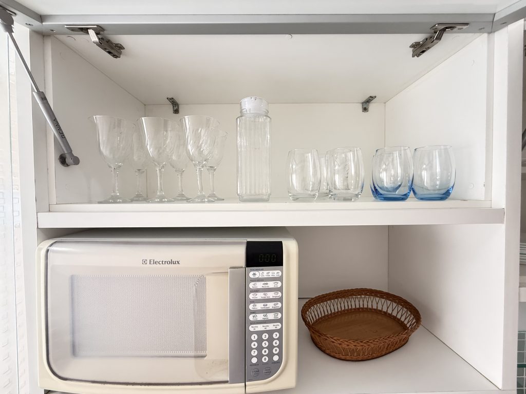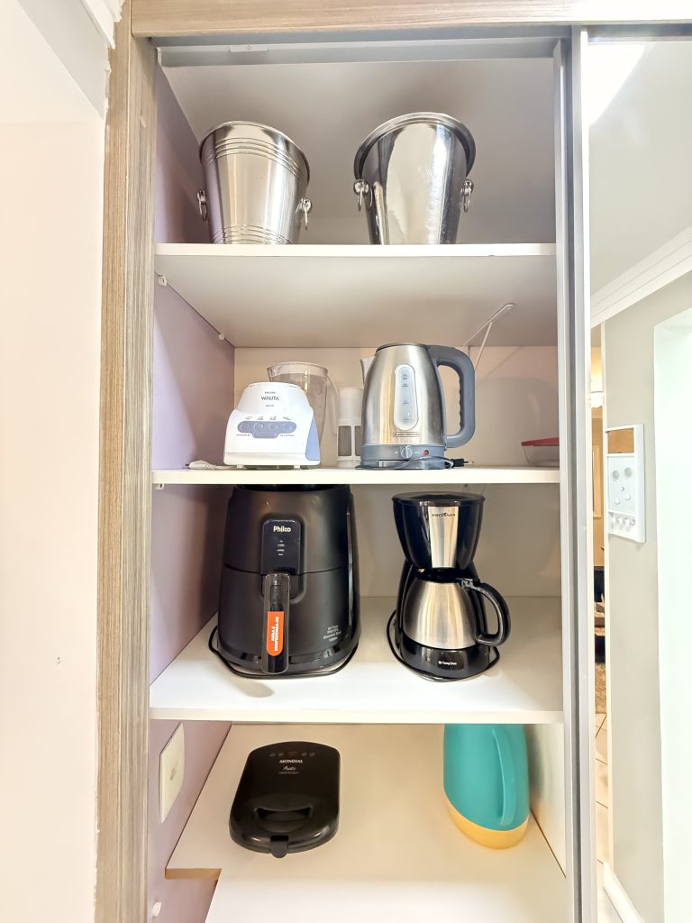 – Airfryer, sanduicheira, cafeteira elétrica, panelas (inclusive de pressão), louças e talheres.