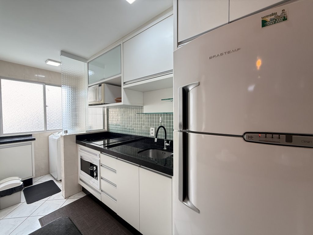 – Geladeira duplex, cooktop elétrico, forno elétrico, filtro de água potável.