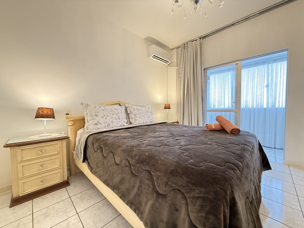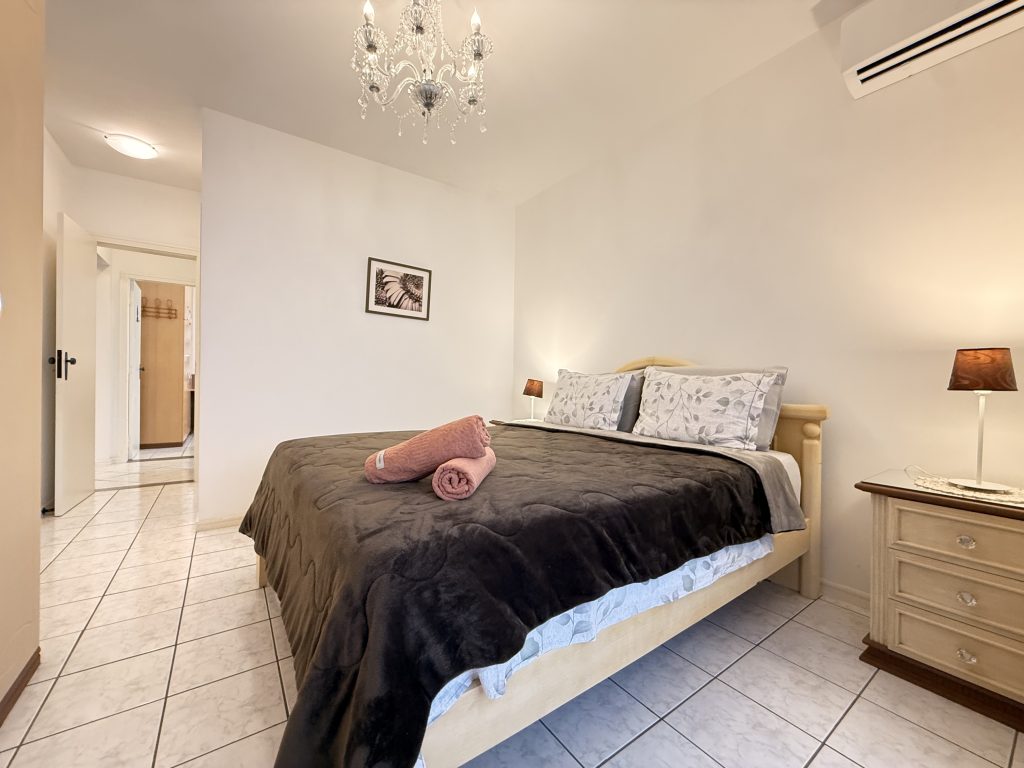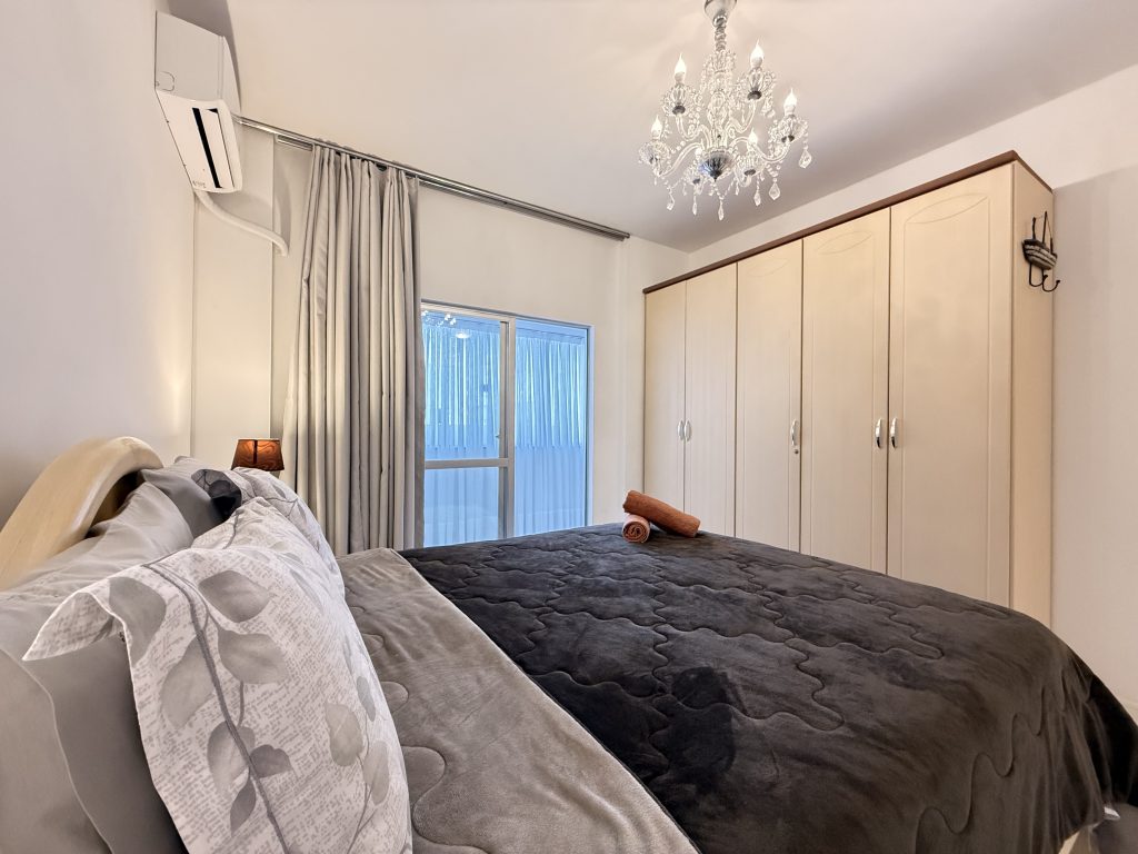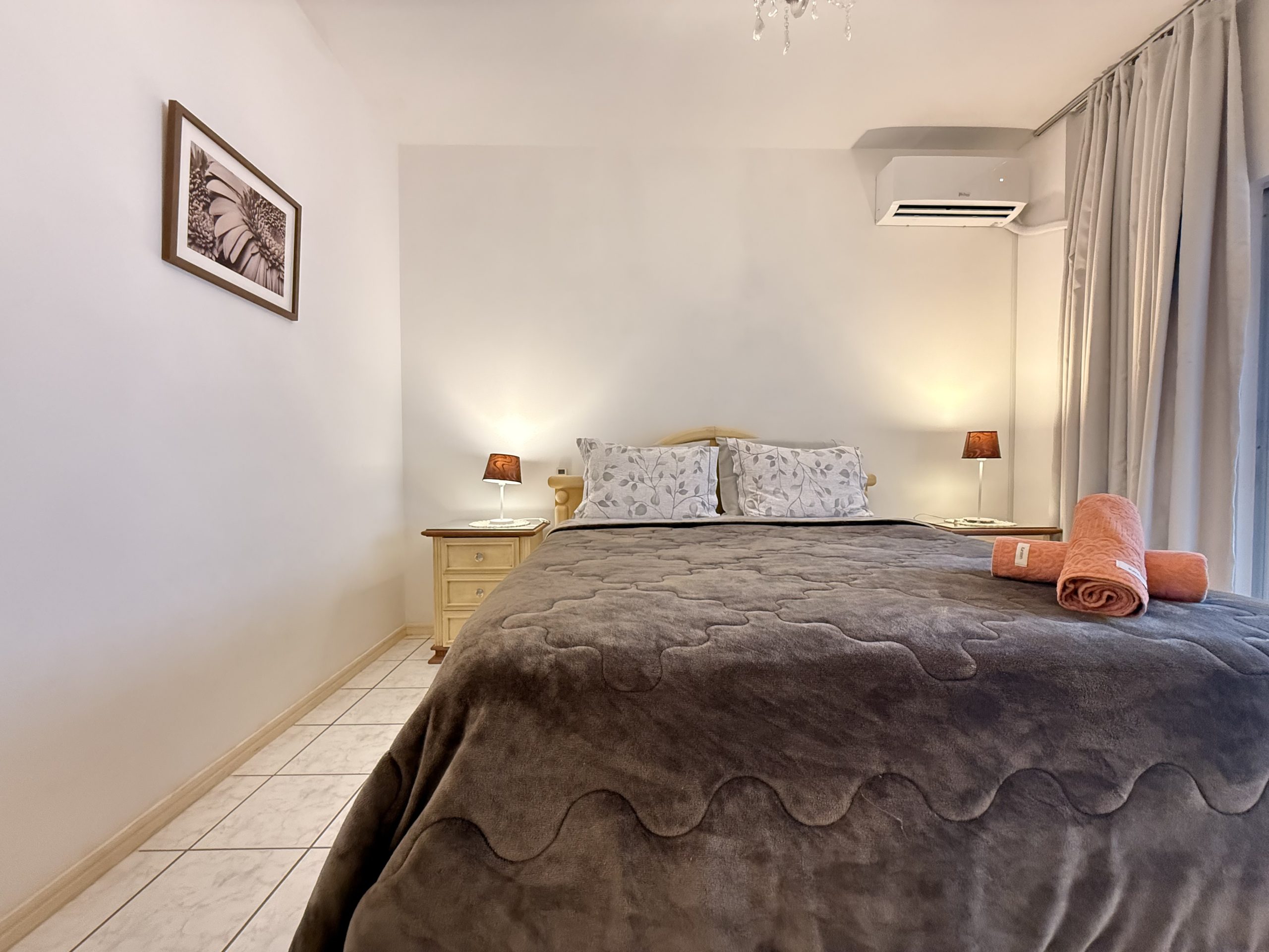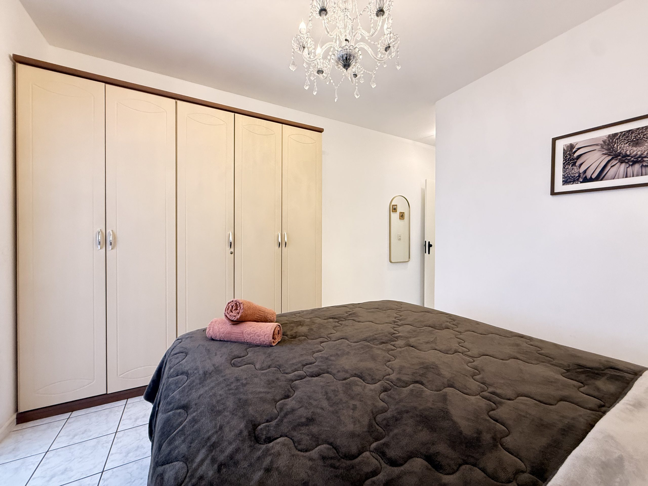 – QUARTO 1: Suíte com cama de casal, ar condicionado split novo, armário e acesso a sacada. (tem espaço para um colchão de solteiro no chão)