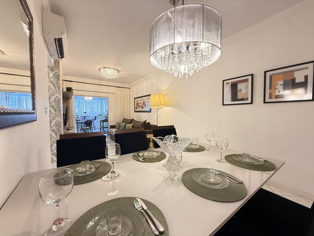 Encantador apartamento, elegantemente decorado e totalmente equipado! Este aconchegante espaço possui dois quartos, incluindo uma suíte, com capacidade para acomodar até 6 pessoas. Fornecemos roupas de cama e banho para garantir sua comodidade. A sacada apresenta uma churrasqueira gourmet, completa com todos os utensílios necessários para um churrasco perfeito. A cozinha é totalmente equipada, incluindo uma geladeira duplex nova e um fogão elétrico moderno, proporcionando tudo o que você precisa para se sentir em casa. A sala espaçosa oferece entretenimento com TV a cabo, enquanto a conexão Wi-Fi de fibra óptica de 250MB garante uma conexão rápida e confiável. A garagem privativa completa as comodidades deste encantador espaço.