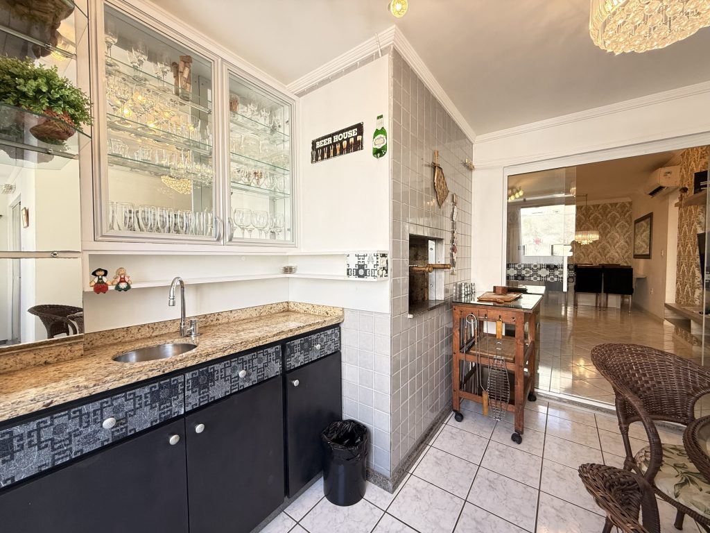 – Sacada com churrasqueira gourmet, grelha e espetos e grelha de peixe também!